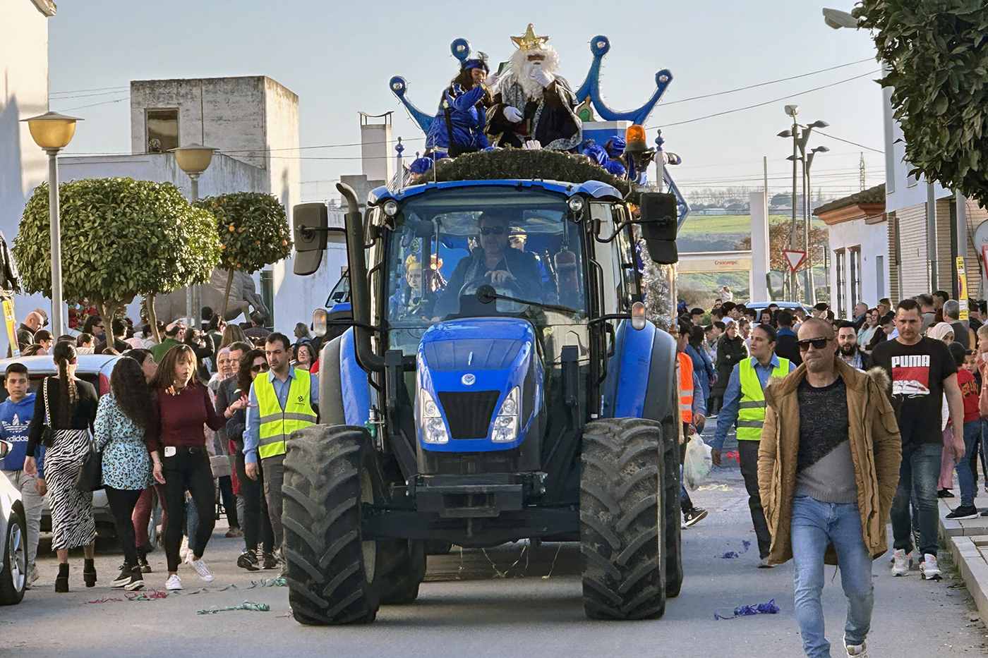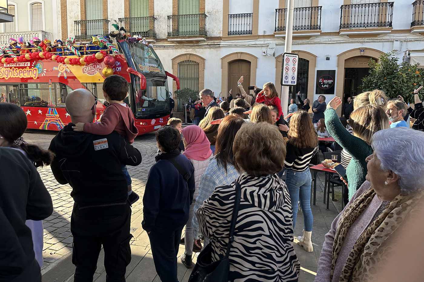 A esta hora, Melchor (Adrián Palomino), Gaspar (Victoria Rodríguez) y Baltasar (Cinta Morales) reciben el calor de San Juan del Puerto en su paseo por las calles y plazas tras recibir por parte de las autoridades locales las llaves de la Villa. Sus Majestades, que han llegado en bus panorámico, han percibido el calor de sanjuaneros y sanjuaneras que se han echado una vez más a la calle, especialmente de los niños y niñas que han recibido a los Reyes con expectación y aplausos en la puerta del Ayuntamiento. Antes de esta bienvenida en la Plaza de España, los Reyes, en un gesto con los más mayores, realizaron una visita a la Residencia ‘San Joaquín y Santa Ana’ entregando unas sillas de baño y a cada uno de los residentes unas cálidas mantas para que puedan pasar los fríos del invierno, cumpliendo así el deseo de la carta enviada en su momento por el Ayuntamiento a los magos de Oriente.