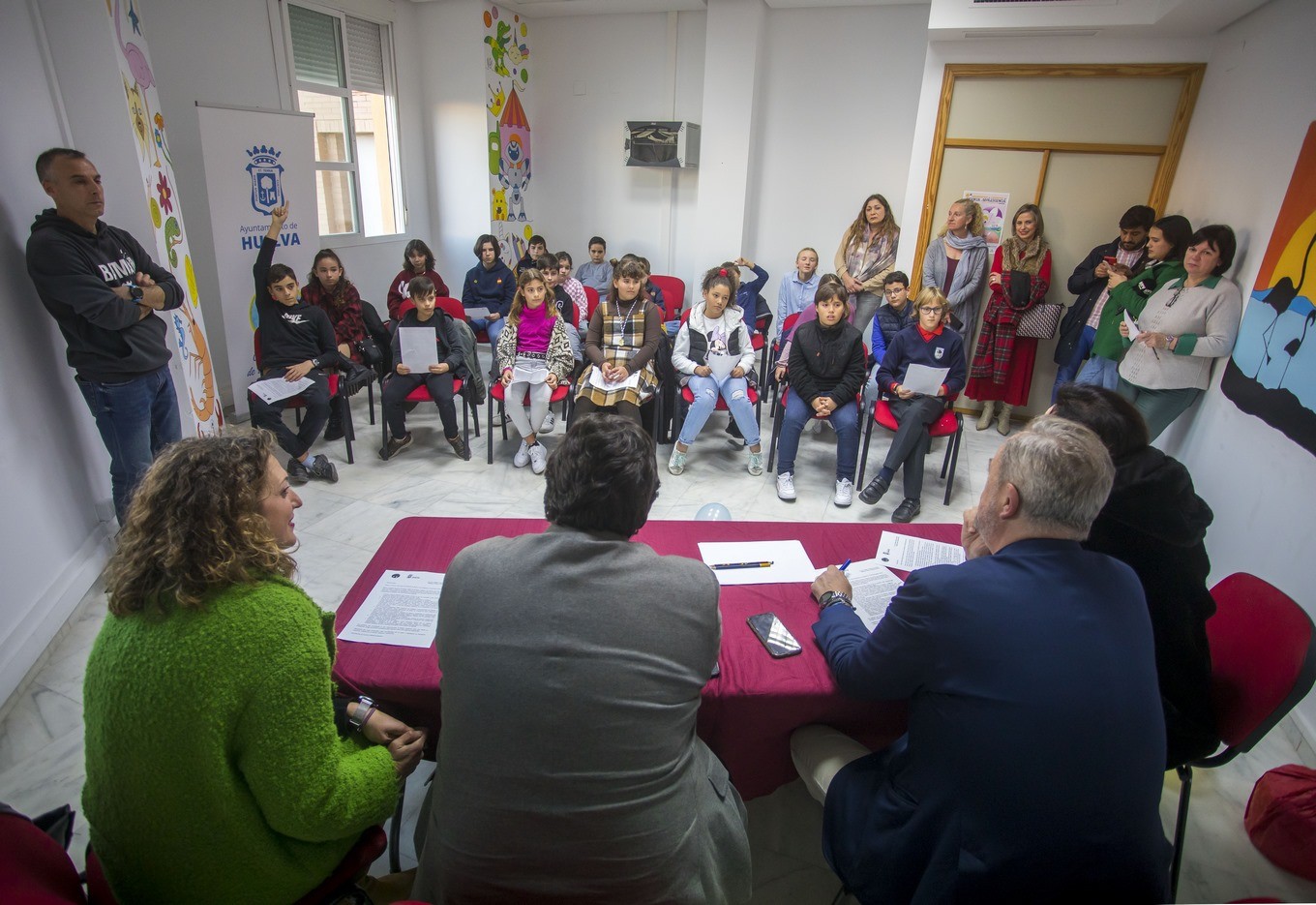 La inauguración de la sede ha coincidido con un encuentro, en el que además de la concejala de Políticas Sociales e Igualdad, María José Pulido; el teniente de alcalde de Urbanismo, medioambiente y Transición Ecológica, Manuel Gómez y la concejala de Hábitat Urbano e Infraestructura, Esther Cumbrera, han atendido las propuestas y peticiones del Consejo Municipal de la Infancia relativas principalmente a la limpieza de la ciudad, especialmente en relación a las zonas verdes, parques y jardines. Asimismo, se han debatido cuestiones relacionadas con los perros, sobre el incremento de espacios para jugar con sus dueños, pero fundamentalmente en relación a la preocupación por el problema de los excrementos. Asimismo, han mostrado su interés por la conservación y puesta en valor de los edificios y espacios emblemáticos de la ciudad, con el objetivo de proteger la historia y el patrimonio cultural onubense, así como por el mantenimiento, conservación y limpieza de los cabezos.