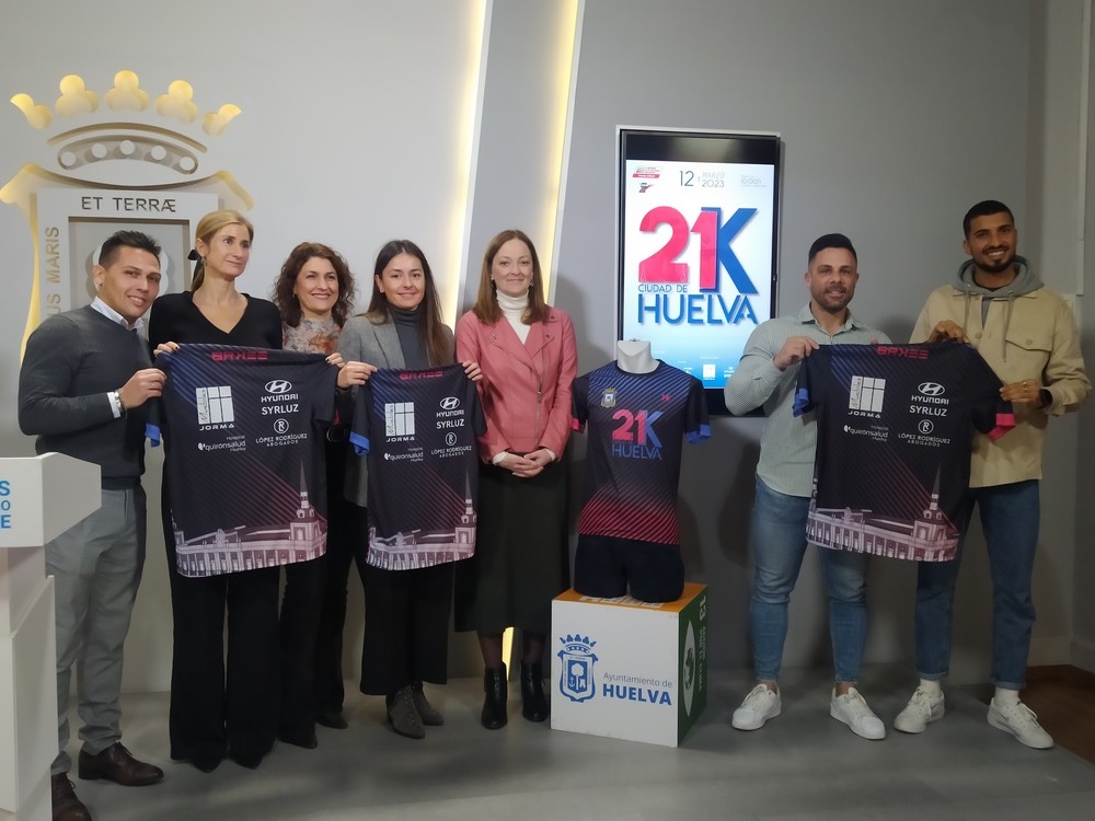 El Ayuntamiento de Huelva ha acogido hoy la presentación de la camiseta oficial de la primera media maratón homologada que tendrá la capital, la ‘21K Ciudad de Huelva’, que se celebrará el próximo 12 de marzo a las 10.00 horas y que está impulsada por el Consistorio onubense en colaboración con el Club Maratón Huelva Puerto del Descubrimiento.