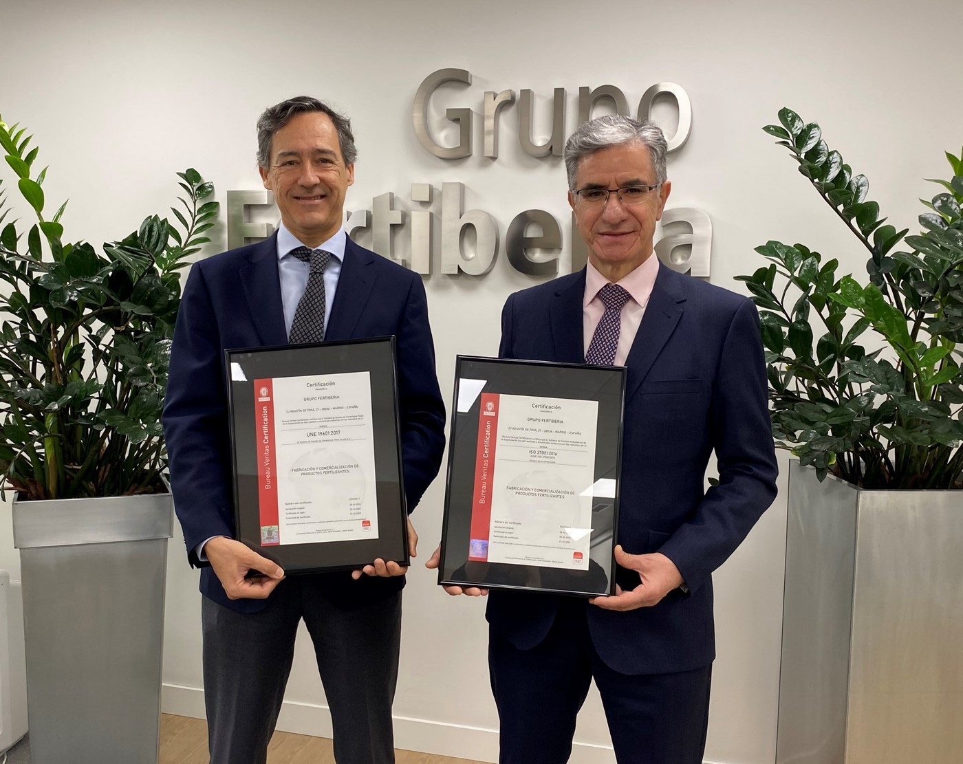 “Con estas dos certificaciones, Fertiberia demuestra su compromiso con las buenas prácticas empresariales y el control estricto de cualquier actividad fraudulenta que pueda surgir dentro de la compañía”, ha manifestado Pedro González, director de Certificación de Gobierno Corporativo de Bureau Veritas, durante el acto de entrega del certificado.