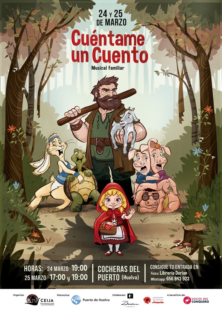 ‘Cuéntame un cuento’ es una obra que recupera los cuentos clásicos con los que nos criamos, como Caperucita Roja, Tres cerditos, Siete cabritillos, etc., desde una historia original y con multitud de valores tales como la inteligencia emocional, tolerancia, respeto, solidaridad, lucha contra el acoso, aceptar el ritmo de cada persona, etc. En palabras de muchas/os espectadoras/es: “cada niña/o y colegio deberían ver este musical. Es increíble todo lo que transmite”.
