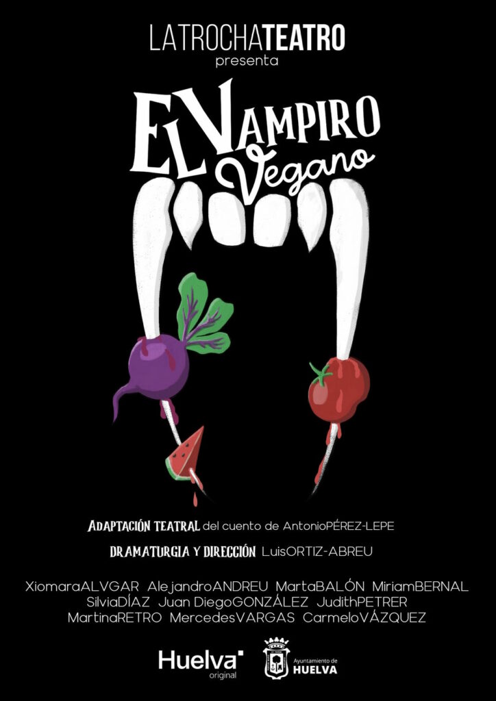 La primera de las obras se titula ‘El vampiro vegano’, y está destinada al público más infantil. Es una adaptación teatral del cuento del escritor onubense Antonio Pérez-Lepe, realizada y dirigida por Luis Ortiz.. Una obra de teatro llena de aventuras, amigos y amigas, humor… pero también de sueños, rebeldía y tesón.