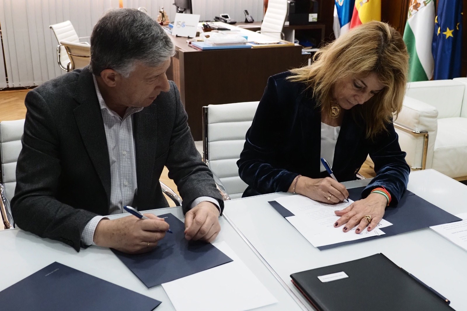 La presidenta del Puerto de Huelva ha mantenido un encuentro con el alcalde de Palos de la Frontera, Carmelo Romero, en el que se ha materializado el acuerdo.