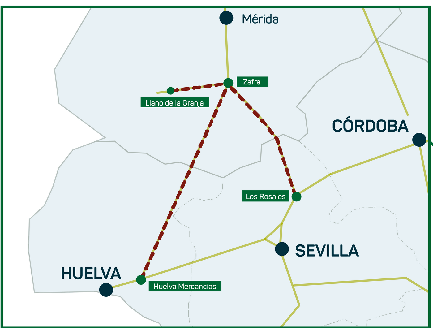 Recientemente, Adif ha adjudicado también los contratos para la supresión del bloqueo telefónico y la implantación del GSM-R en las líneas Zafra-Huelva Mercancías y Zafra-Llano de la Granja, con una inversión de 54,8 millones, adicionales a las inversiones destinadas a la renovación de la vía convencional Zafra-Huelva.