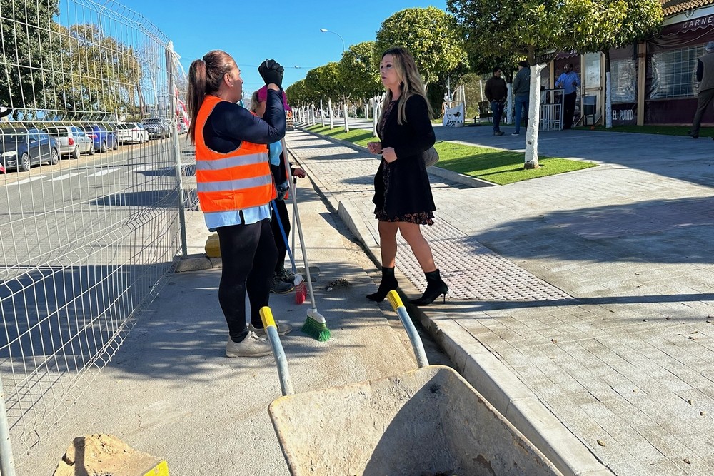 La alcaldesa Rocío Cárdenas, ha supervisado hoy el estado de los trabajos que el Ayuntamiento viene acometiendo desde noviembre en una de las aceras de la entrada al municipio por Trigueros o autopista. Con esta actuación llevada a cabo mediante un PFEA, se le dota a la zona de un nuevo aspecto. Esta primera fase comprende la parte del acerado del lado del Cementerio Municipal prolongándose hasta el inicio del restaurante El Punto. Cuenta con un presupuesto de algo más de 300.000 €, de los cuales, más de 200.000 se encaminan a la contratación de mano de obra desempleada empleando a 34 oficiales de albañilería y 85 peones de la construcción.
