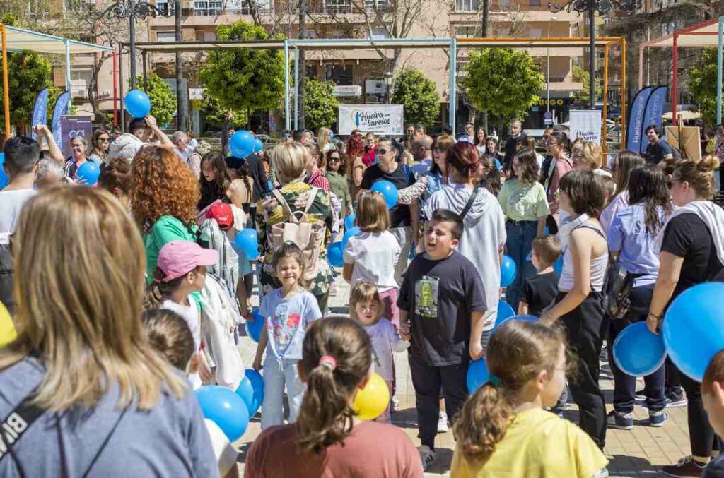 Como ya ha ocurrido en El Matadero, La Orden y el Molino de la Vega, la visita a Isla Chica ha arrancado con una convocatoria dirigida a los más pequeños del barrio. Así, más de un centenar de niños y niñas se han sumado a la invitación realizada por el artífice de este proyecto, el artista Carlos Dovao, para realizar un mural colectivo en la plaza del Antiguo Estadio. Un acto que ha contado con la asistencia de La Moni, que actuará como embajadora de esta barriada.