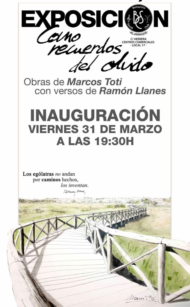 Esta muestra surge de la amistad y la colaboración que hace tiempo vienen desarrollando Ramón Llanes y Marcos Toti en espacios como Poetas de Huelva por la Paz aunque esta vez lo hacen como tándem para esta primera experiencia a la que seguro le seguirán más puesto que, con esta fórmula de unificar versos y obra plástica, han abierto todo un mundo de posibilidades en el que ya están pensando en volver a adentrarse.