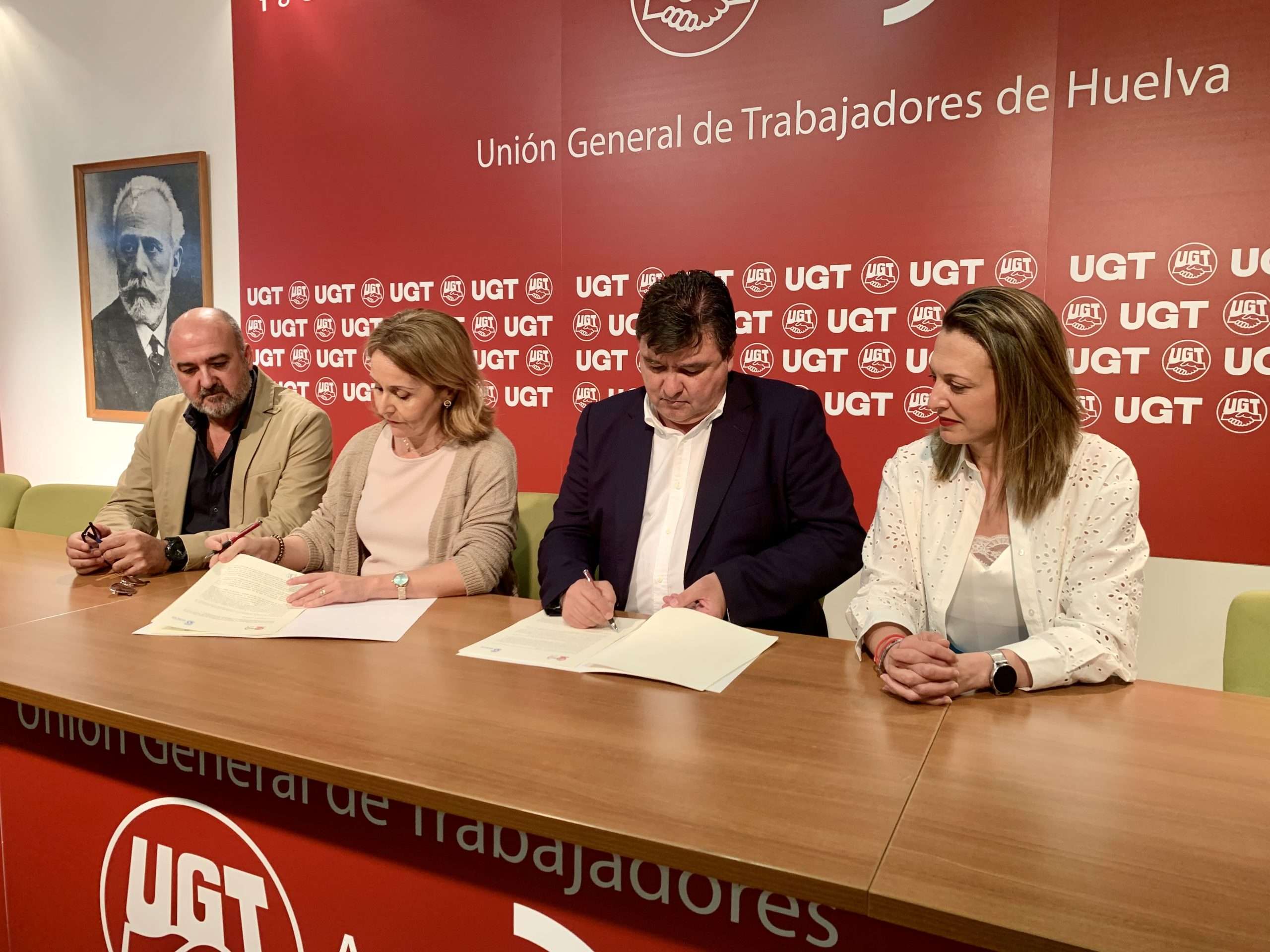 El alcalde de Huelva, Gabriel Cruz, y la secretaria general de la Federación Provincial de Servicios Públicos de la Unión General de Trabajadores de Huelva, Marisa Fernández, han firmado esta mañana un acuerdo de colaboración para la puesta en marcha de una Unidad para el Estudio y la Valoración del acoso (EVA) que sirva de herramienta para hacer frente al acoso laboral en las administraciones públicas y en defensa de los trabajadores y trabajadoras del sector público.