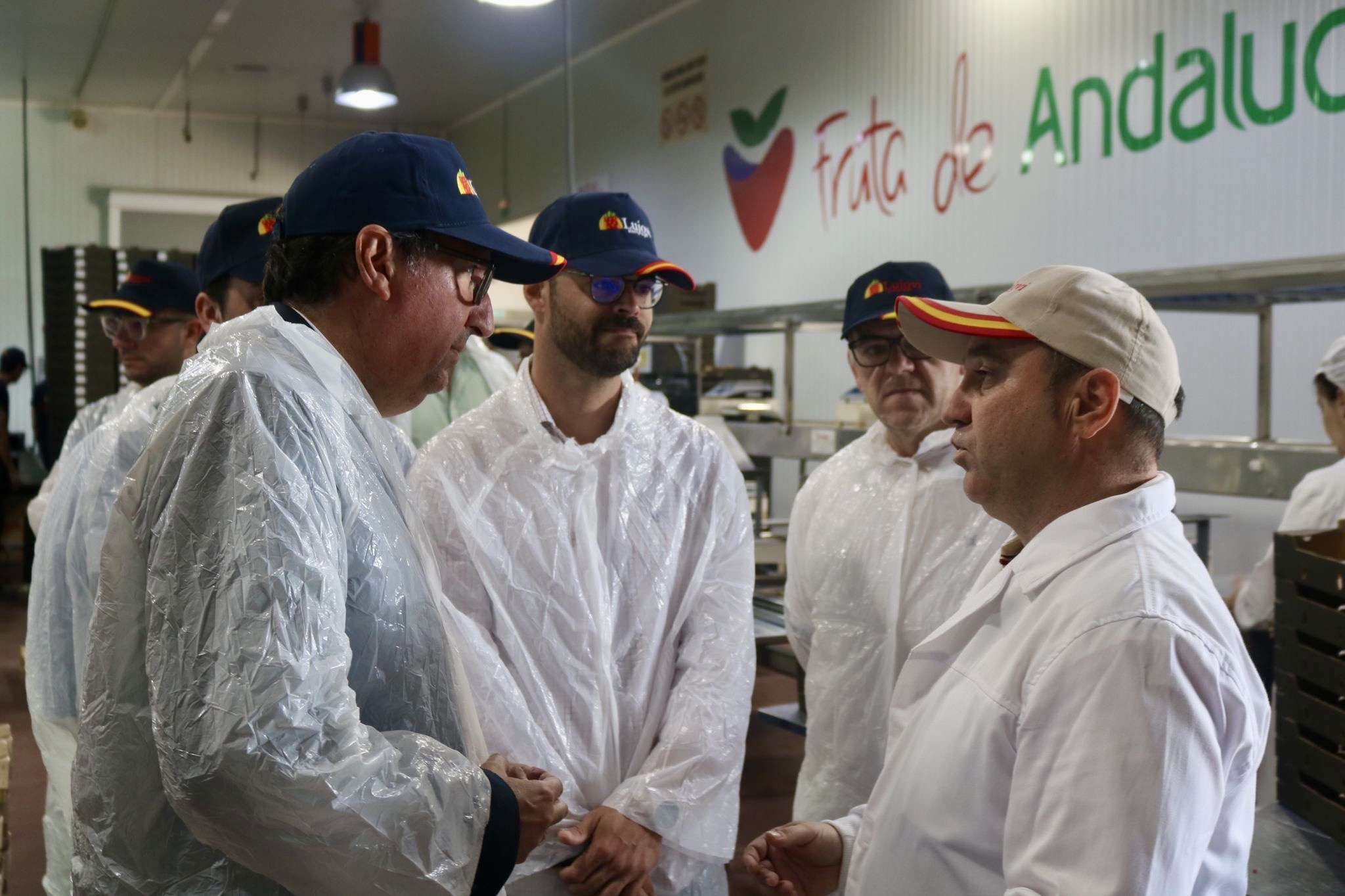 El presidente del Partido Popular, Manuel Andrés González, ha remarcado hoy en su visita a Lujovi Sociedad Cooperativa Andaluza, en Rociana del Condado, que el tercer Decreto de Sequía aprobado por el Gobierno andaluz invierte en infraestructuras hídricas en la provincia ante la “dejadez y el abandono” del Gobierno de Sánchez.