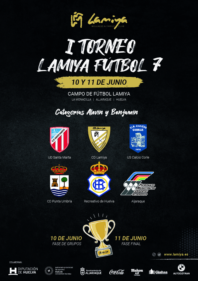Por todo ello, todos los amantes de un ambiente familiar y sano están invitados a disfrutar de este I Torneo Lamiya de fútbol 7 en las instalaciones del club, que se encuentran en La Monacilla (Aljaraque).