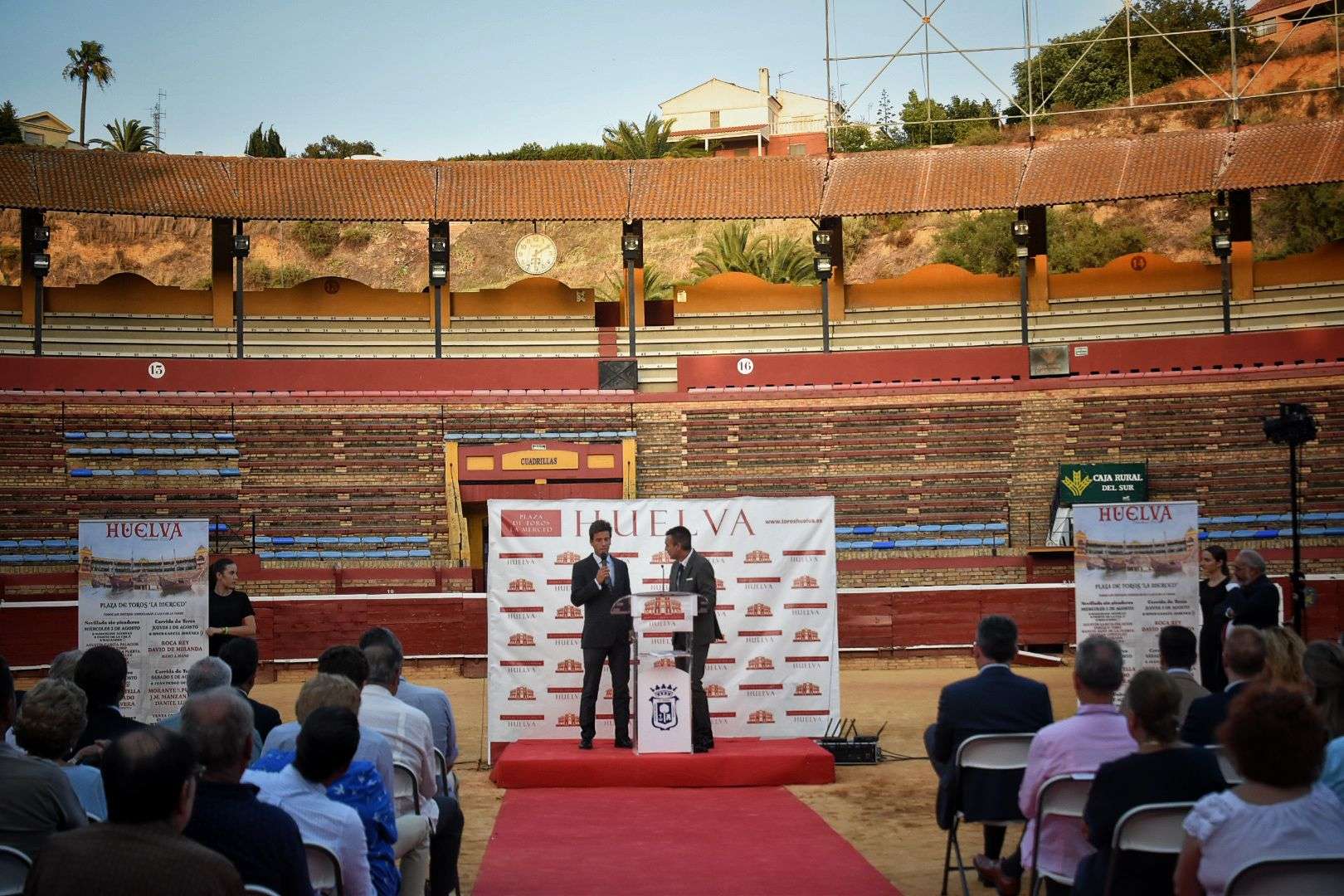 Un acto de puertas abiertas que contó con la presencia en el mismo ruedo onubense de distintas autoridades civiles y militares del Huelva, prensa, patrocinadores como la Fundación Caja Rural del Sur, Serranía de Macías y la agencia seguros Servalba, así como algunos de los toreros anunciados en el abono “Cada tarde un descubrimiento”.
