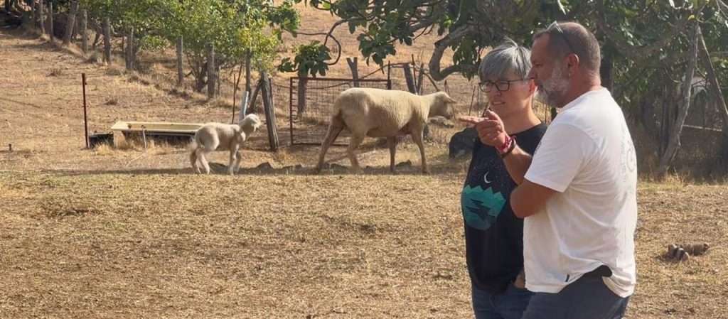 Huelva, 19 de julio.- El candidato al Congreso de los Diputados por Sumar en la provincia de Huelva, Rafael Sánchez Rufo, se ha desplazado este jueves hasta una pequeñas explotación ganadera situada en Cortegana para explicar las acciones de Sumar ante la problemática que sufren agricultores y ganaderos en la provincia de Huelva.
