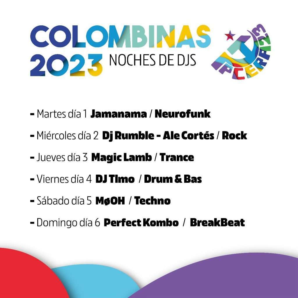 Y para culminar nuestras noches de Colombinas, desde el martes hasta el domingo, de 02:00 a 06:00, tendremos el placer de contar con los y las Dj’s más destacados del momento