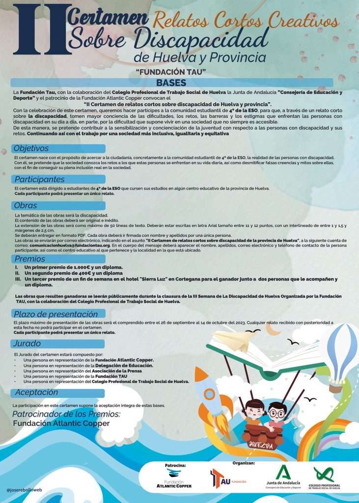 Arrancan los preparativos para el ‘II certamen de relatos cortos creativos sobre discapacidad de Huelva y Provincia’ que pretende la implicación del alumnado onubense en la concienciación sobre la igualdad de las personas con diferentes discapacidades y ayudar a construir “una sociedad mejor desde la educación”.