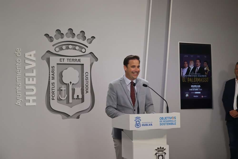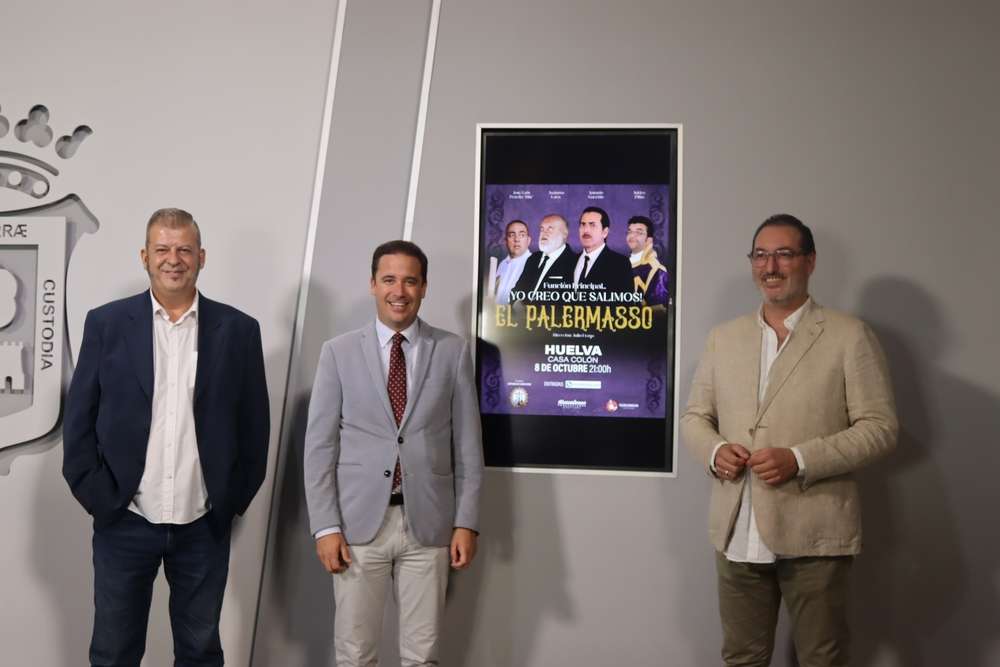 El concejal de Cultura y Patrimonio Arqueológico del Ayuntamiento de Huelva, Nacho Molina, acompañado por el Hermano Mayor de la Hermandad de la Santa Cruz, Rafael Millán; ha presentado en rueda de prensa el espectáculo teatral de ‘El Palermasso’, la famosa web serie cofrade de humor que arrasa en Youtube y que llegará a la Casa Colón el próximo 8 de octubre. Concretamente se trata de la obra ‘Función Principal…¡Yo creo que salimos!’, dirigida por Julio Fraga, quien también ha participado en la presentación del evento.