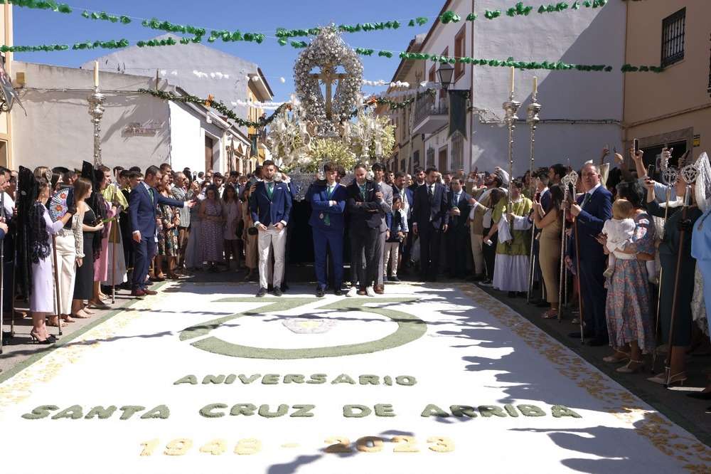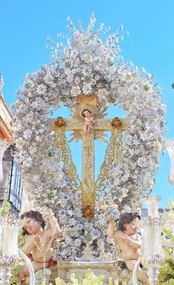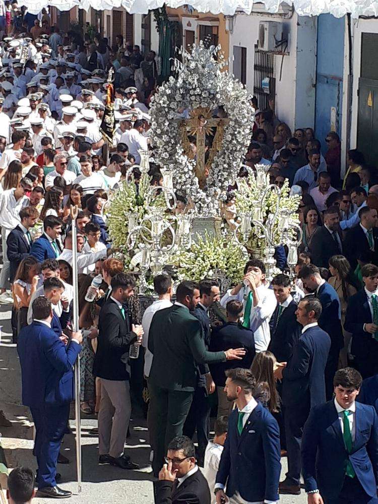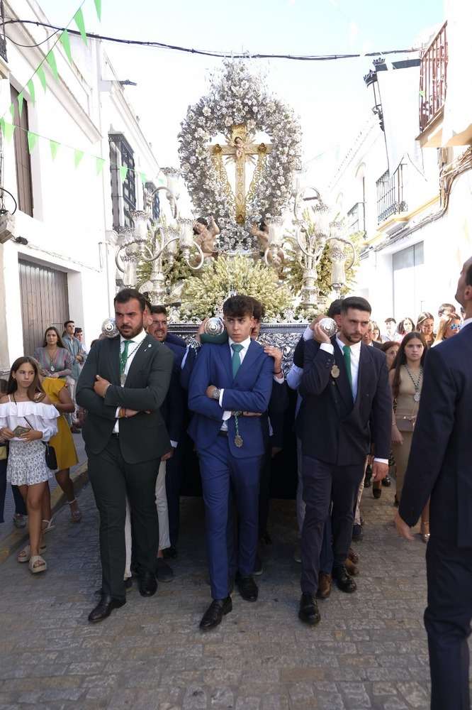 Este domingo 24 de septiembre Rociana ha celebrado una multitudinaria procesión conmemorativa del setenta y cinco aniversario de la llegada y bendición al municipio de la Santa Cruz de Arriba, Madero con gran devoción. El cortejo fue presidido por la Junta de Gobierno, autoridades civiles y militares, el cura párroco, los alcaldes de Moguer y Rociana, así como con una amplia participación de devotas de mantilla, y el acompañamiento musical de la prestigiosa Banda Ntra. Sra. del Rosario de Cádiz, con casi ciento cincuenta músicos, además de, una treintena de hermandades invitadas llegadas de toda la provincia.