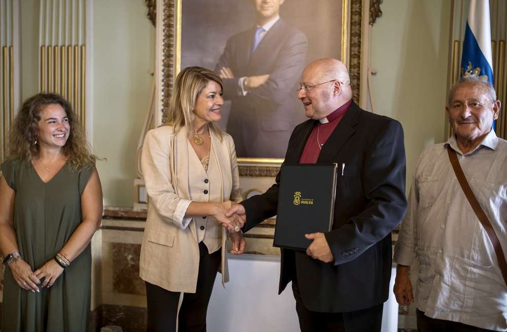 La alcaldesa de Huelva, Pilar Miranda y el obispo por la Comunión Anglicana de la Iglesia Española Reformada Episcopal, Carlos López, han firmado un convenio para convertir el Cementerio Británico en un nuevo atractivo turístico de la ciudad. De esta forma, ambas instituciones se comprometen a poner en marcha las actuaciones necesarias para favorecer las visitas y la divulgación “de este exponente del legado británico que atesora una importante riqueza patrimonial que queremos dar a conocer no sólo a los turistas, también a los onubenses”.