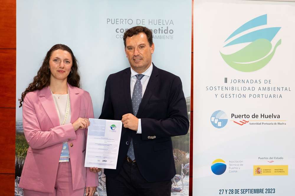 De hecho, este certificado ha sido entregado por parte de Anaëlle Boudry, Senior Policy Advisor en ESPO, al presidente del Puerto de Huelva, durante las II Jornadas de sostenibilidad ambiental y gestión portuaria, que han tenido lugar los días 27 y 28 de septiembre en Las Cocheras del Puerto de Huelva.