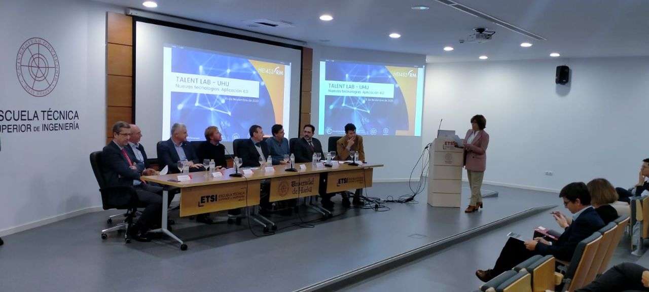 El Aula de Grados de la Escuela Técnica Superior de Ingeniería (ETSI) ha acogido esta semana el acto de constitución del Talent Lab-UHU en ‘Nuevas Tecnologías. Aplicación 4.0’, enmarcado en el proyecto europeo ‘Building Ecosystem Integration Labs at HEI to foster Smart Specialization and Innovation on Sustainable Raw Materials (HEI4S3-RM)’. En dicho acto, se presentaron diversos trabajos de investigación (tesis doctorales, TFG, TFM) y se desarrolló una mesa redonda entre los miembros del Talent-lab.