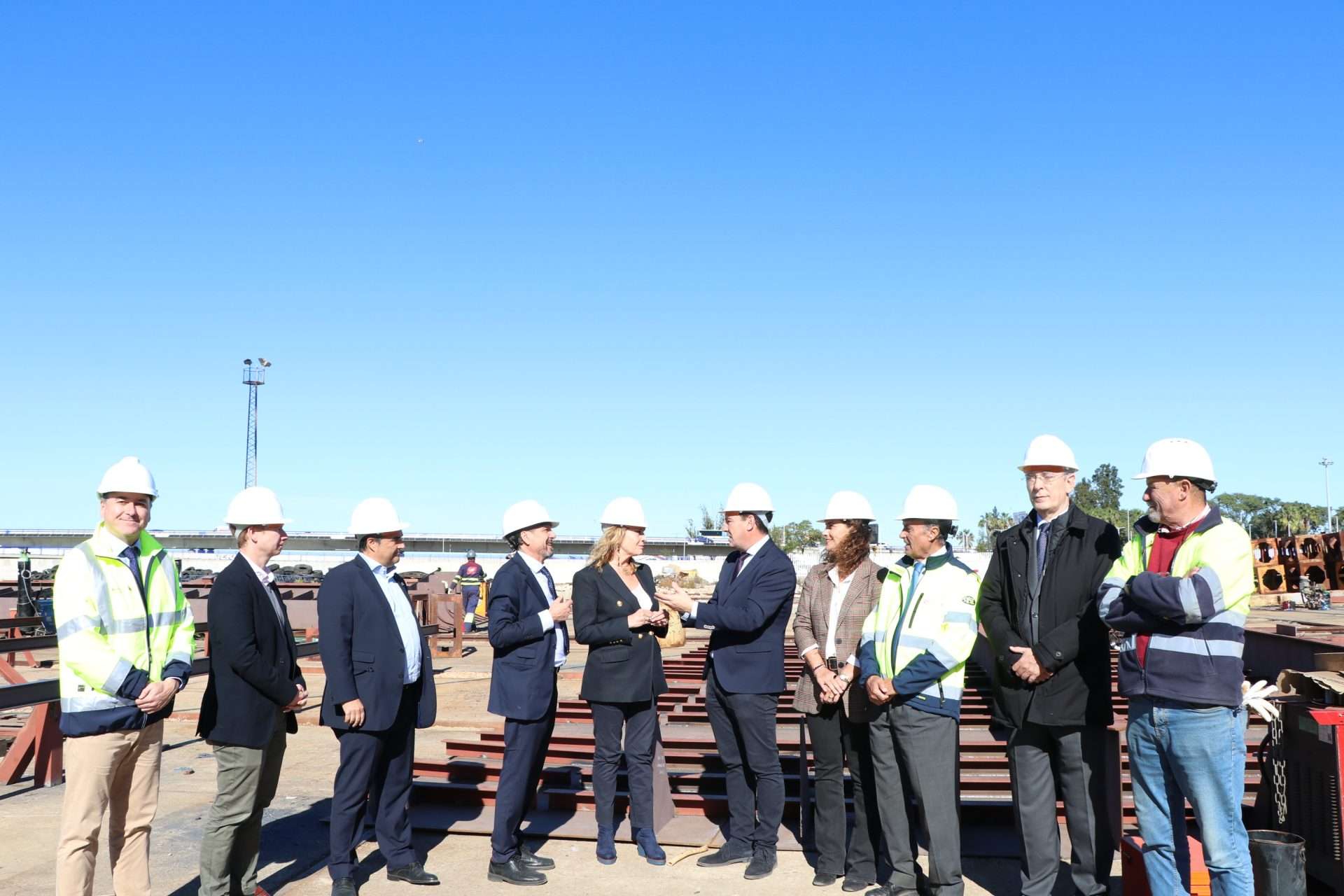 Por otro lado, Alberto Santana ha asegurado que la ejecución de la pontona es fundamental para el desarrollo de la nueva rampa Ro-Ro en el Muelle Sur, que concentra la apuesta del Puerto de Huelva por la diversificación de su actividad como puerto multimodal y logístico. En este contexto, Santana ha añadido que “en nuestra visita a Nuevo Astillero de Huelva hemos conocido de cerca el proceso de construcción de esta estructura flotante de acero, que se está llevando a cabo con medios punteros para garantizar la máxima seguridad de la pontona”. Igualmente, Santana ha puesto de manifiesto que “la construcción de esta estructura de acero en Huelva refleja la aportación de la actividad y el valor añadido que el Puerto de Huelva genera en su entorno, fortaleciendo así al tejido productivo local”.