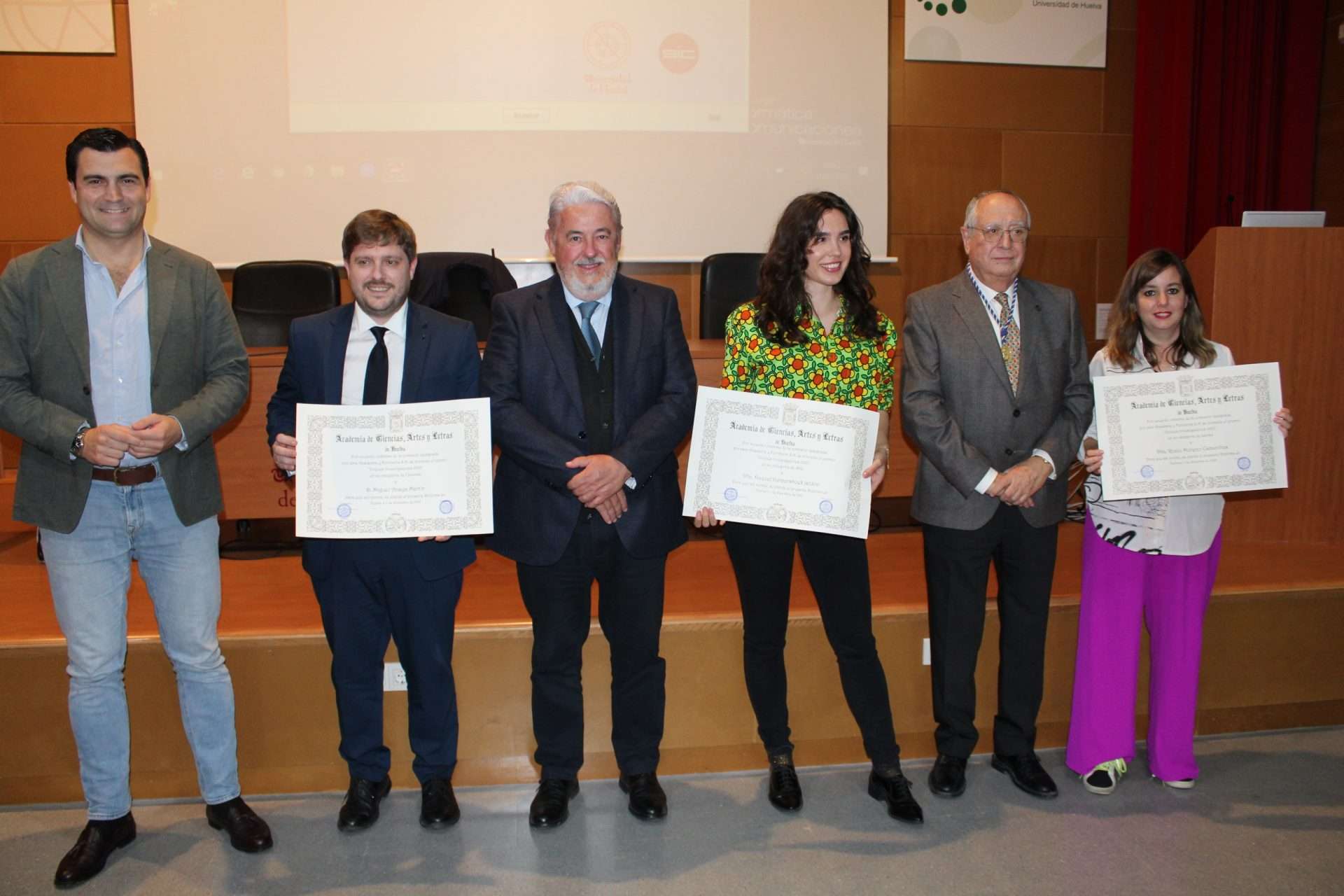 La Academia de Ciencias, Artes y Letras de Huelva ha hecho entrega en la Facultad de Ciencias Experimentales de la Universidad de Huelva de los Premios Jóvenes Investigadores de este año 2023 en un acto en el que Miguel Anaya (categoría de Ciencias), Rocío Moreno (Categoría de Letras) y Raquel Kurpershoek (categoría de Artes) recogieron unos galardones que han contado este año con el patrocinio de Fertiberia y con los que se recompensan los méritos tanto científicos como artísticos de creadores e investigadores de hasta 35 años.