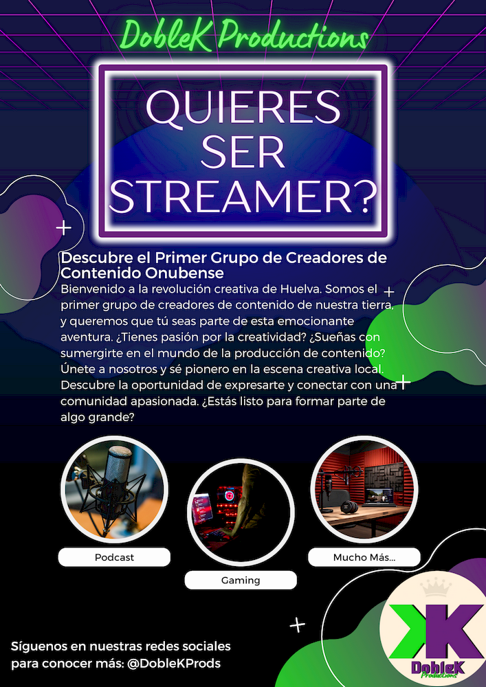 En el corazón de la soleada Huelva, nace un fenómeno creativo destinado a trascender fronteras y transformar la forma en que experimentamos el contenido digital. DobleK Productions, una iniciativa que fusiona la pasión por la creación de contenido con la innovación tecnológica, se alza como el faro de la creatividad en nuestra comunidad.