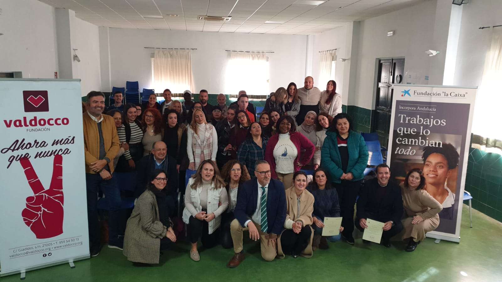 Antonio González , Presidente de Fundación Valdocco, ha sido el encargado de dar la bienvenida a los/as participantes a la clausura, agradeciendo la participación y esfuerzo tanto del alumnado como de las empresas que han colaborado, dando paso a las intervenciones de Miriam Mateos Delegada Territorial de Fundación “la Caixa”, Aranzazu Lasso de la Vega, del equipo de coordinación Incorpora Andalucía (ASSDA), José Manuel Moreno Mateo, Concejal de Servicios Sociales, Familia, Accesibilidad del Ayuntamiento de Huelva, Carmen Díaz Soriano, Diputada de Servicios Sociales, Drogodependencia y Bienestar Social. Contando así mismo con la participación de Cinta Perales Técnica del Punto Formativo Incorpora de Fundación Valdocco. Así mismo han intervenido Jorge Rivero y Sonia Rodríguez, alumnos de los cursos, quienes han transmitido su experiencia y agradecimiento al contar con la oportunidad de mejorar sus competencias profesionales y profesionales, dando paso a las empresas colaboradoras.