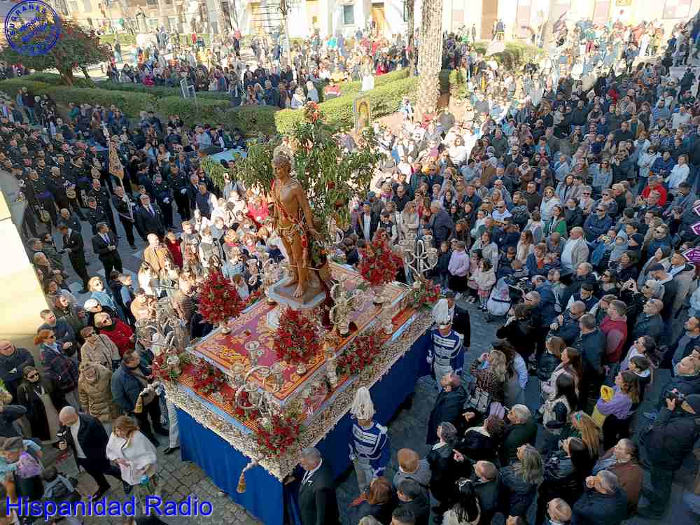 Procesión del Santo Esta asociación volverá a recibir en la rotonda de Los Litris al centurión romano, santo y mártir San Sebastián, con ofrenda de romero, laurel y clavel rojo. Rememorando así cuando San Sebastián salía de su capilla y procesionaba por su festividad hacia la parroquia mayor de San Pedro, haciéndolo ahora desde su propia parroquia.