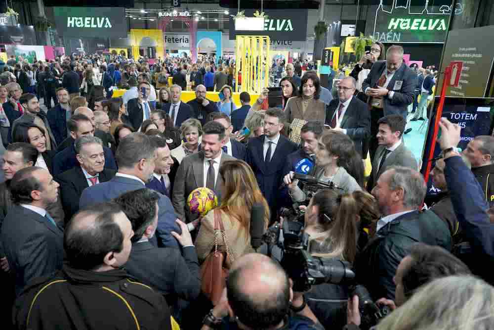 El campeón del mundo e internacional con España, David Villa, ha visitado el stand de Huelva en Fitur apoyando el campeonato