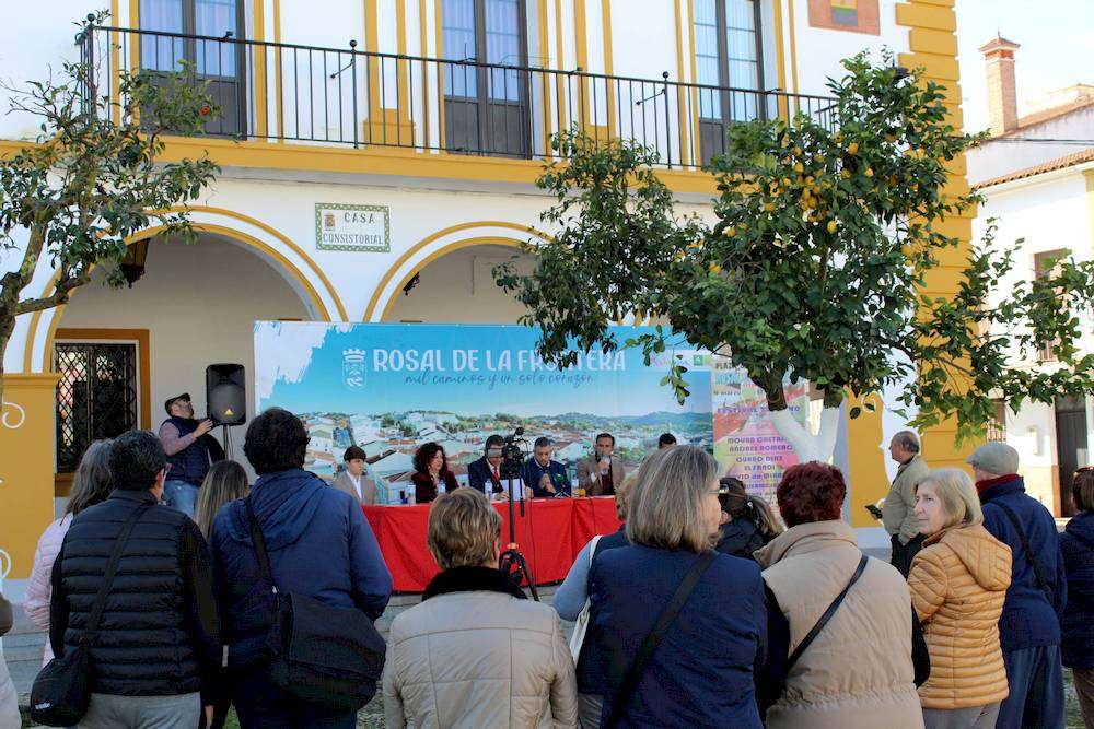 El acto de presentación estuvo presidido por el Delegado Territorial de Agricultura, Pesca, Agua y Desarrollo Rural de la Junta de Andalucía en Huelva, D. Álvaro Burgos; a quien acompañaron el Alcalde-Presidente de Rosal de la Frontera, D. Antonio Carlos; la Primera Teniente de Alcalde y Concejal de Cultura y Fiestas del Excmo. Ayto de la localidad, Dña. Rosa Mª López; el empresario, ganadero y apoderado, D. José Luis Pereda; el matador de toros David de Miranda; el novillero, Guillermo Luna, el autor del cartel y técnico de Cultura del Excmo. Ayto. D. Carlos Valencia; y el Presidente de la Asociación de Alzheimer de Rosal-AFA, D. Manuel López.