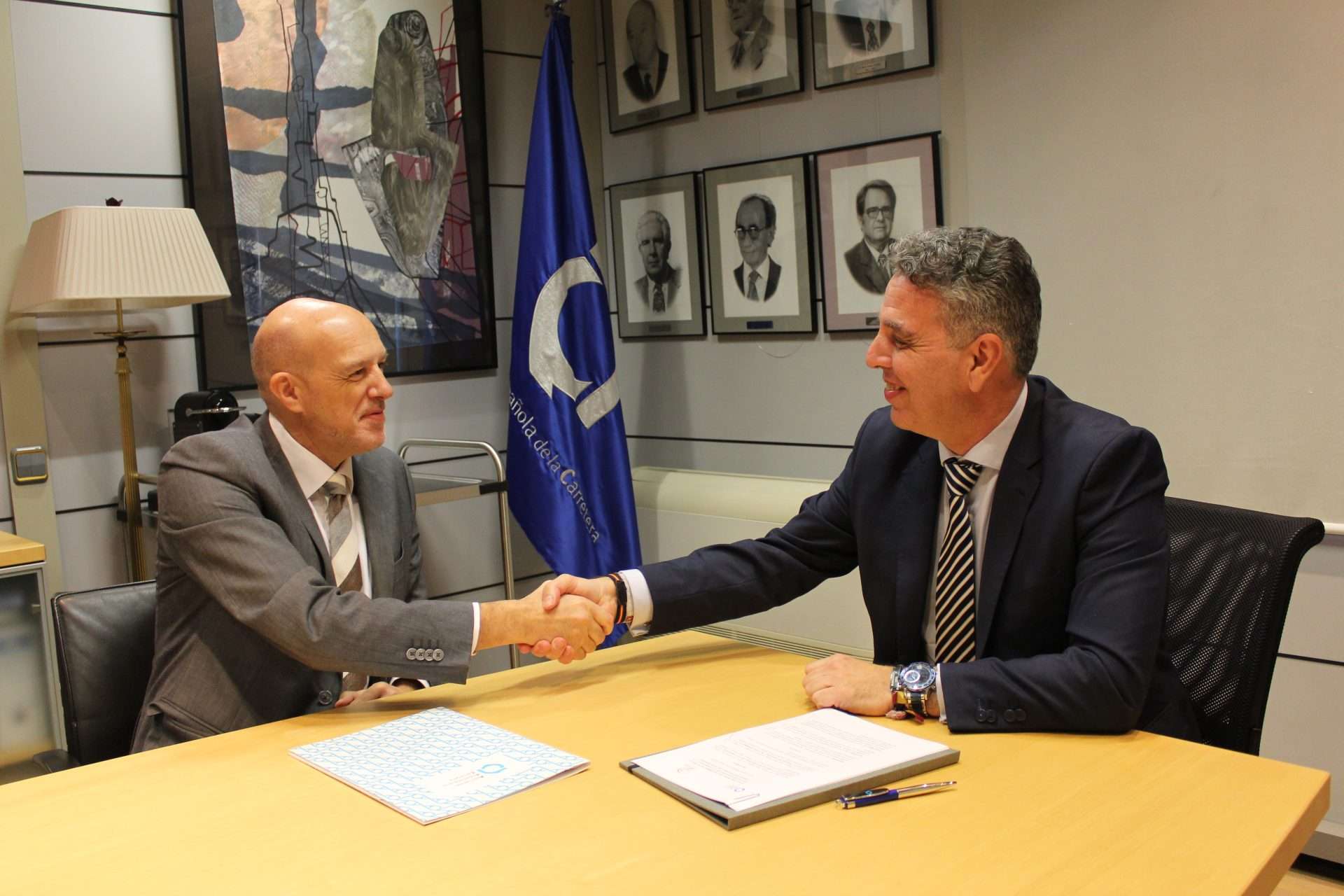 Jacobo Díaz Pineda, Director General de la Asociación Española de la Carretera, y Miguel Ángel Ruiz Anillo, Presidente de la Asociación Española de Consumidores, acaban de suscribir un acuerdo con el fin de colaborar y abordar campañas conjuntas sobre la protección de los usuarios de las carreteras españolas, así como de los derechos de los consumidores de servicios vinculados a la movilidad viaria.