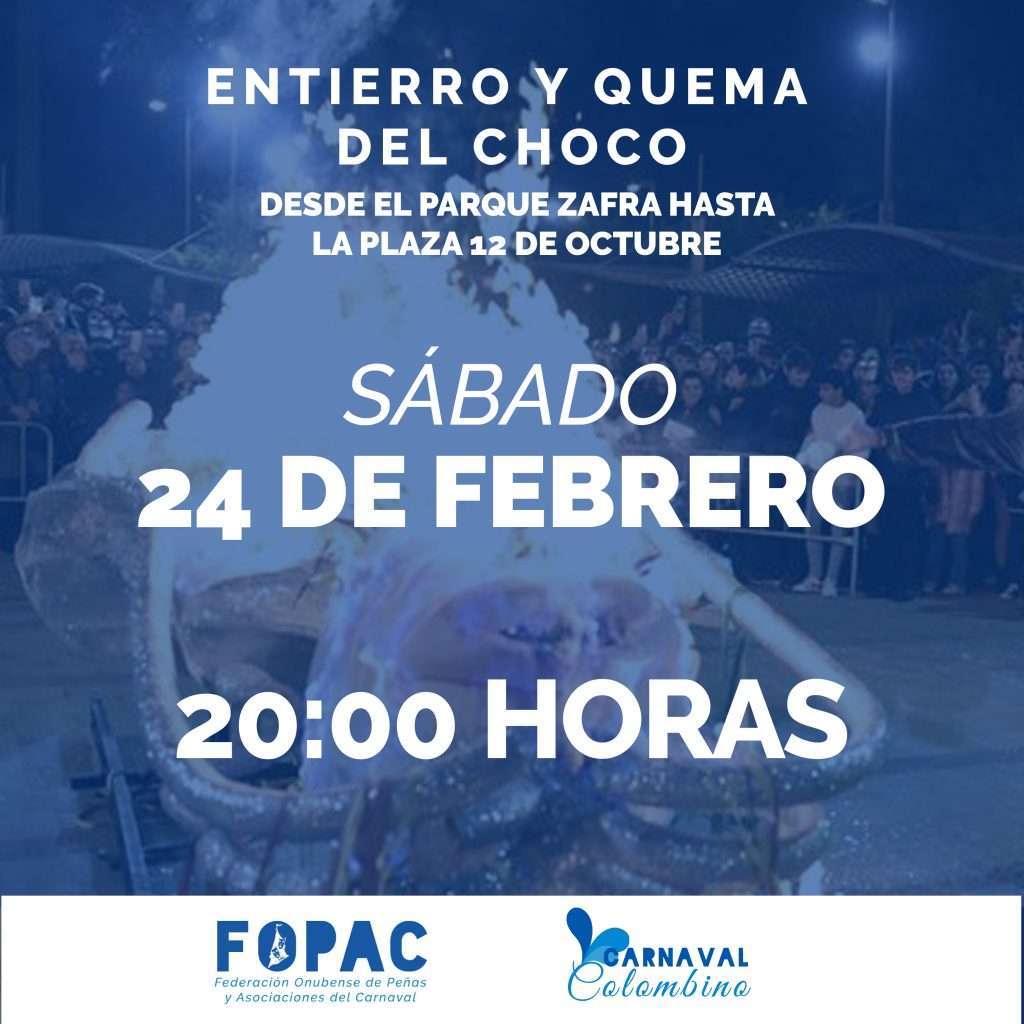 El sábado 24 de febrero será la tradicional quema de nuestro Choco con salida a las 20:00 horas desde el Parque Juan Ceada con el siguiente recorrido: