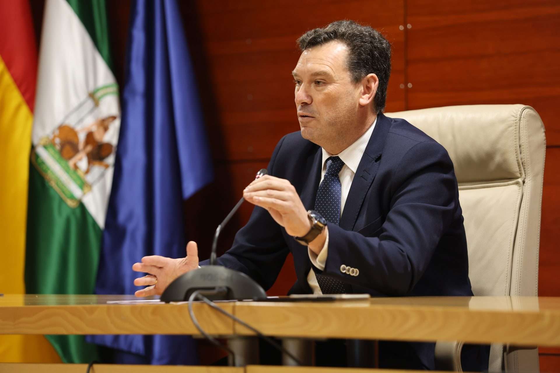 El presidente del Puerto de Huelva, Alberto Santana, acompañado por el director del Puerto de Huelva, Ignacio Álvarez-Ossorio, ha dado a conocer hoy estos datos durante un balance del ejercicio de 2023.