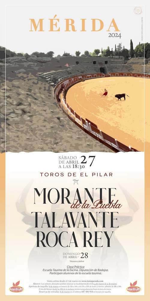 También desde aquí quiero dar las gracias a los toreros que han mostrado esa sensibilidad y en todo momento han estado dispuestos para venir en esa fecha a Mérida, un sábado que es posterior a la Feria de Sevilla y antes de San Isidro. Es una fecha la del 27 de abril, muy estudiada. Todo el equipo de la empresa lleva seis meses trabajando en este cartel y mimando todos los aspectos para que sea un auténtico éxito.