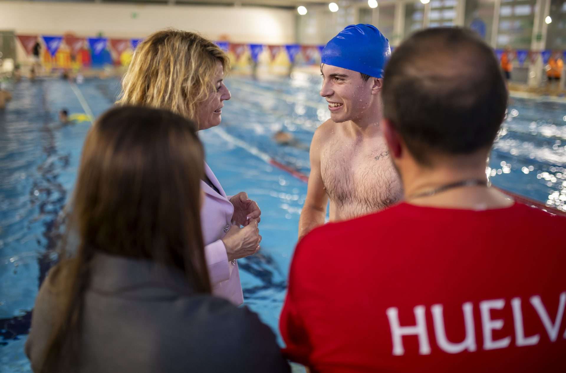 La alcaldesa de Huelva, Pilar Miranda, acompañada de la concejala de Juventud y Deportes, María de la O Rubio, ha visitado la sede del Club Onubenses de Deportes Adaptados, situada en el pabellón de deportes ‘Diego Lobato’, para mantener un encuentro con algunos de los miembros del club durante sus entrenamientos, así como con la presidenta del mismo, Carmen Gutiérrez, y el director técnico, Pepe Griñón.