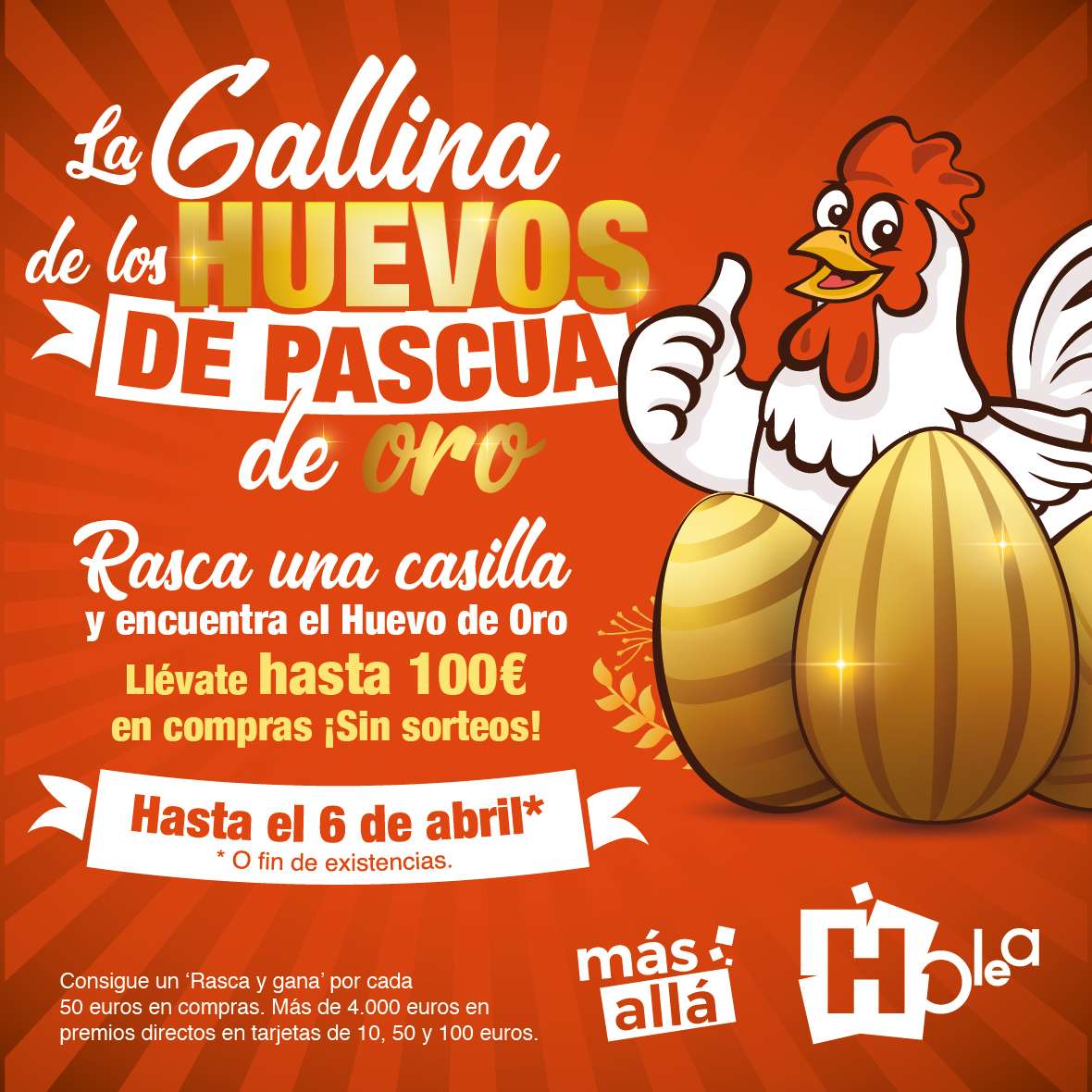 El centro pondrá en circulación casi 4.000 tarjetas de ‘Rasca y gana’ de ‘La gallina de los huevos de Pascua de oro’, que esconderán entre sus nueve casillas ocultas un único huevo dorado y que los participantes deberán encontrar para conseguir un premio directo de 10, 50 o 100 euros en compras entre la oferta comercial y de ocio del centro.
