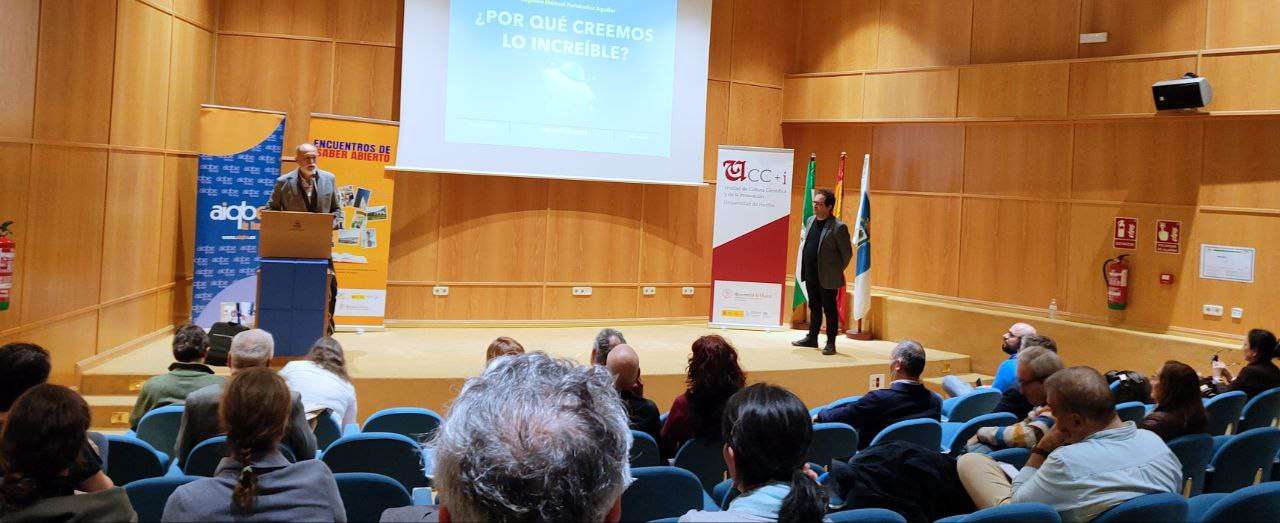 La ponencia final, titulada `¿Por qué creemos lo increíble?´, estuvo a cargo de Eugenio Manuel Fernández Aguilar, físico, profesor, escritor y divulgador, cerrando así con broche de oro un ciclo de encuentros que ha dejado una huella positiva en la comunidad científica y la sociedad en general. Este último encuentro, por su carácter de cierre tuvo un formato diferente a los anteriores, siendo una sesión más plenaria pero dejando un importante tiempo para el debate para no perder la identidad de estos encuentros que ya se han instaurado como una cita de encuentro y debate, en definitiva como una acción de participación ciudadana que aúna novedad, actualidad y pensamiento crítico.