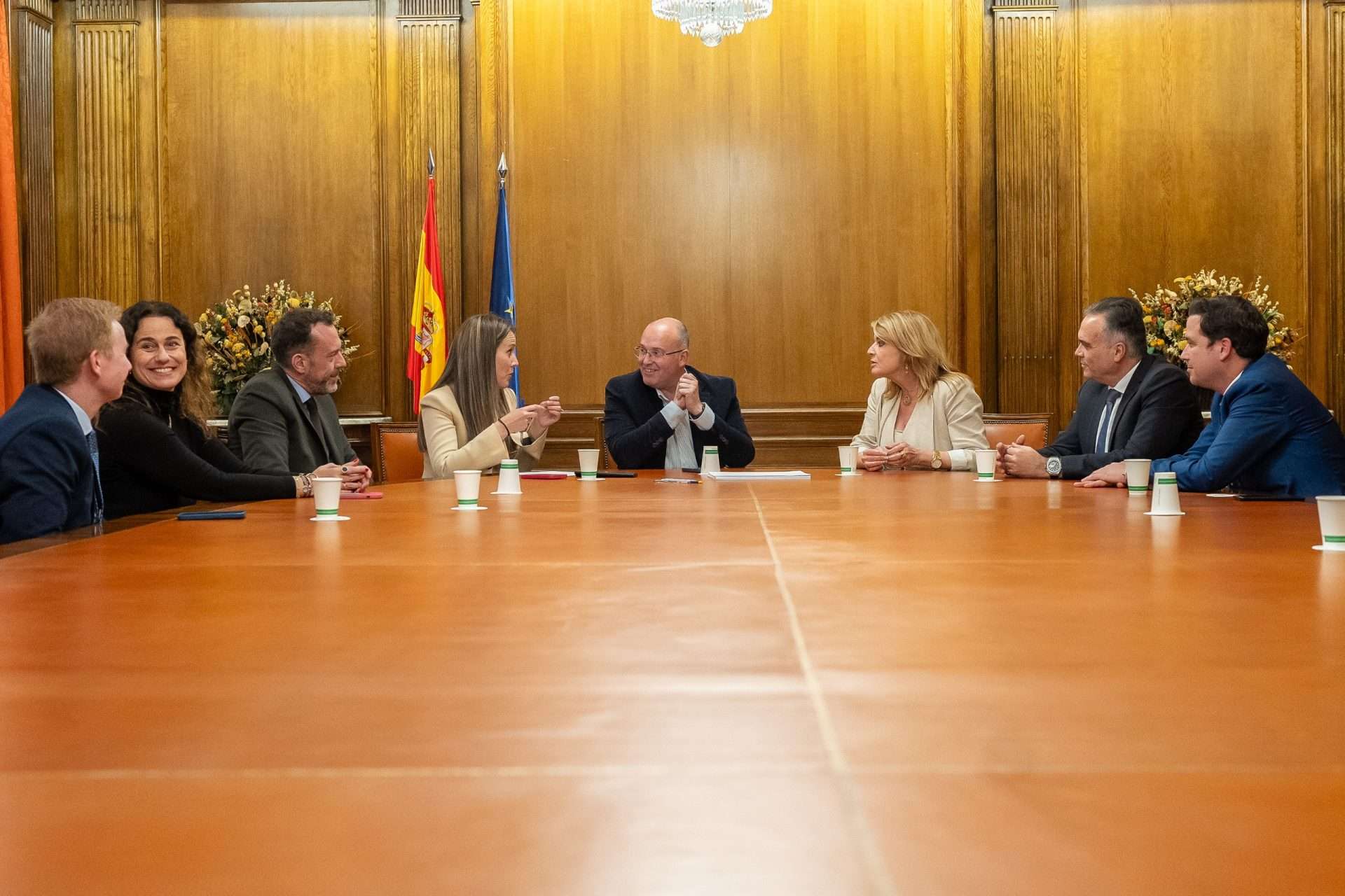 La alcaldesa, Pilar Miranda, mantiene un encuentro con el Grupo Parlamentario Popular para llevar la reivindicación de la línea Faro-Huelva-Sevilla a la próxima sesión de control del Parlamento