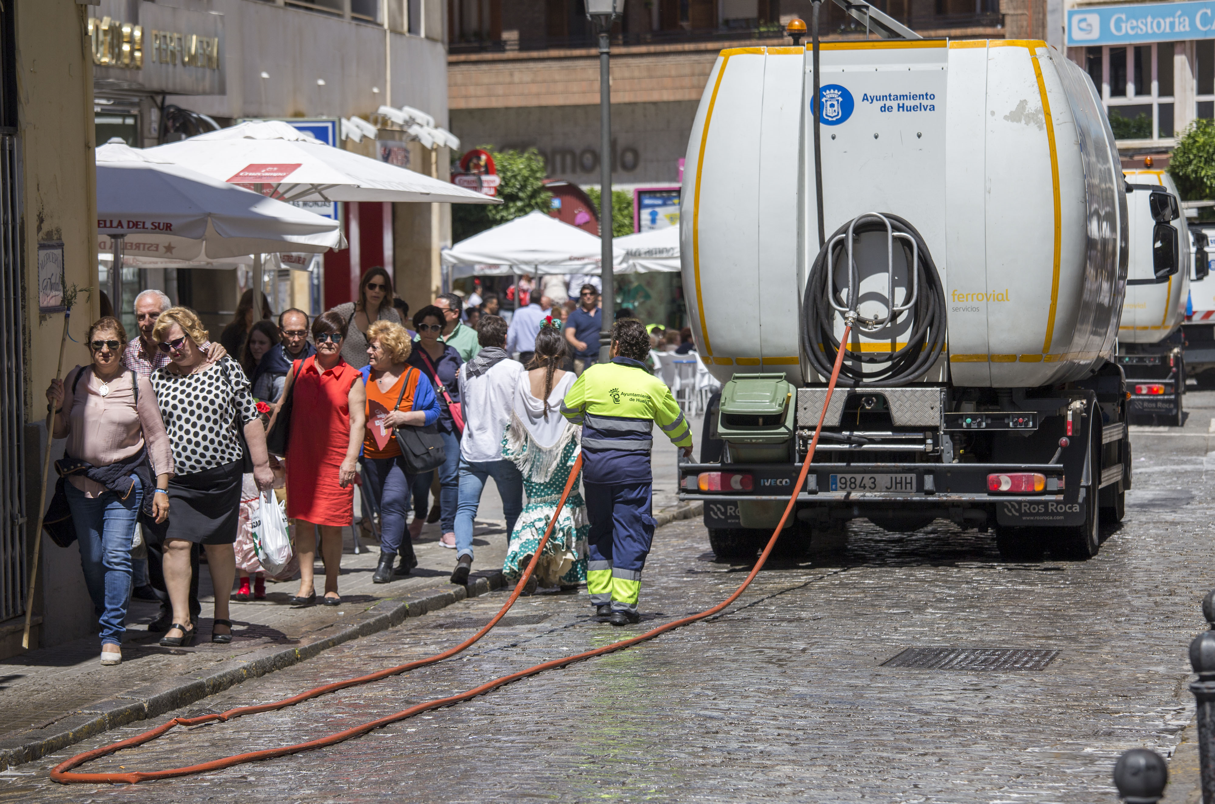 Para ello, el Ayuntamiento ha previsto un plan en el que van a trabajar una quincena de operarios, con cuatro barredoras, dos cisternas baldeadoras llenas de agua con desinfectante y un furgón de apoyo, que acompañarán a las hermandades onubenses hasta la salida de la capital.