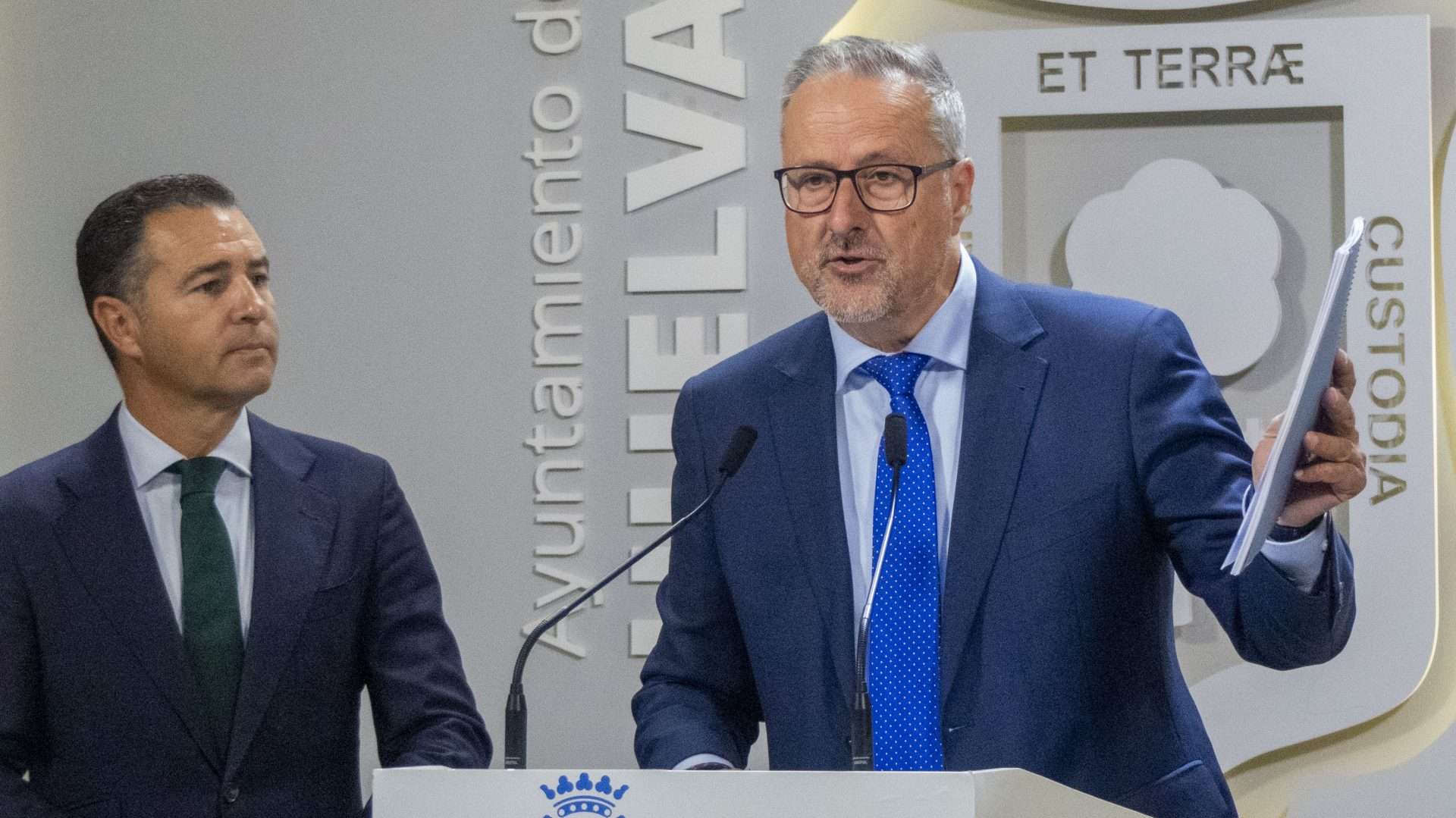 El primer teniente alcalde de Urbanismo y Medioambiente y portavoz del equipo de Gobierno en el Ayuntamiento de Huelva, Felipe Arias, acompañado del concejal de Políticas Sociales, Familia y Accesibilidad, José Manuel Moreno, han anunciado esta mañana en rueda de prensa la aprobación del Plan Local para la Atención Integral a Personas en Situación de Sinhogarismo en la Ciudad de Huelva 2024-2027, en la sesión plenaria a celebrar el próximo miércoles 29 de mayo.