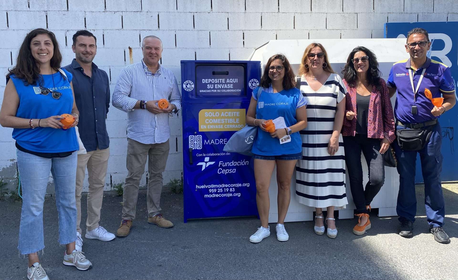 Hoy, coincidiendo con la inauguración de la instalación de estos contenedores, la ONG Madre Coraje Huelva ha regalado embudos donados por la Fundación Cepsa en los aparcamientos de Palparking para concienciar de esta manera sobre la importancia del reciclaje del aceite usado ya que es un agente muy contaminante del agua.