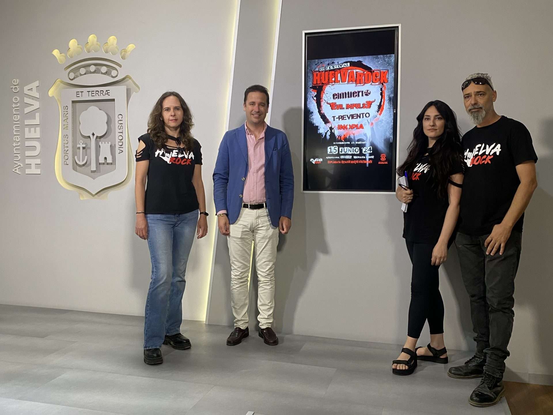 El concejal de Cultura y Patrimonio Arqueológico, Nacho Molina el presidente de la Asociación Huelva Rock, Raúl Bernal; la vicepresidenta de la Asociación Huelva Rock, Elena Navarro; y Rocío López, la secretaria de la Asociación Huelva Rock, han presentado esta mañana en rueda de prensa el tercer festival Huelva Rock. Se trata, como ha dicho el edil, de “una cita imprescindible para el mundo del rock tanto para bandas como para el numeroso público aficionado de este género”.