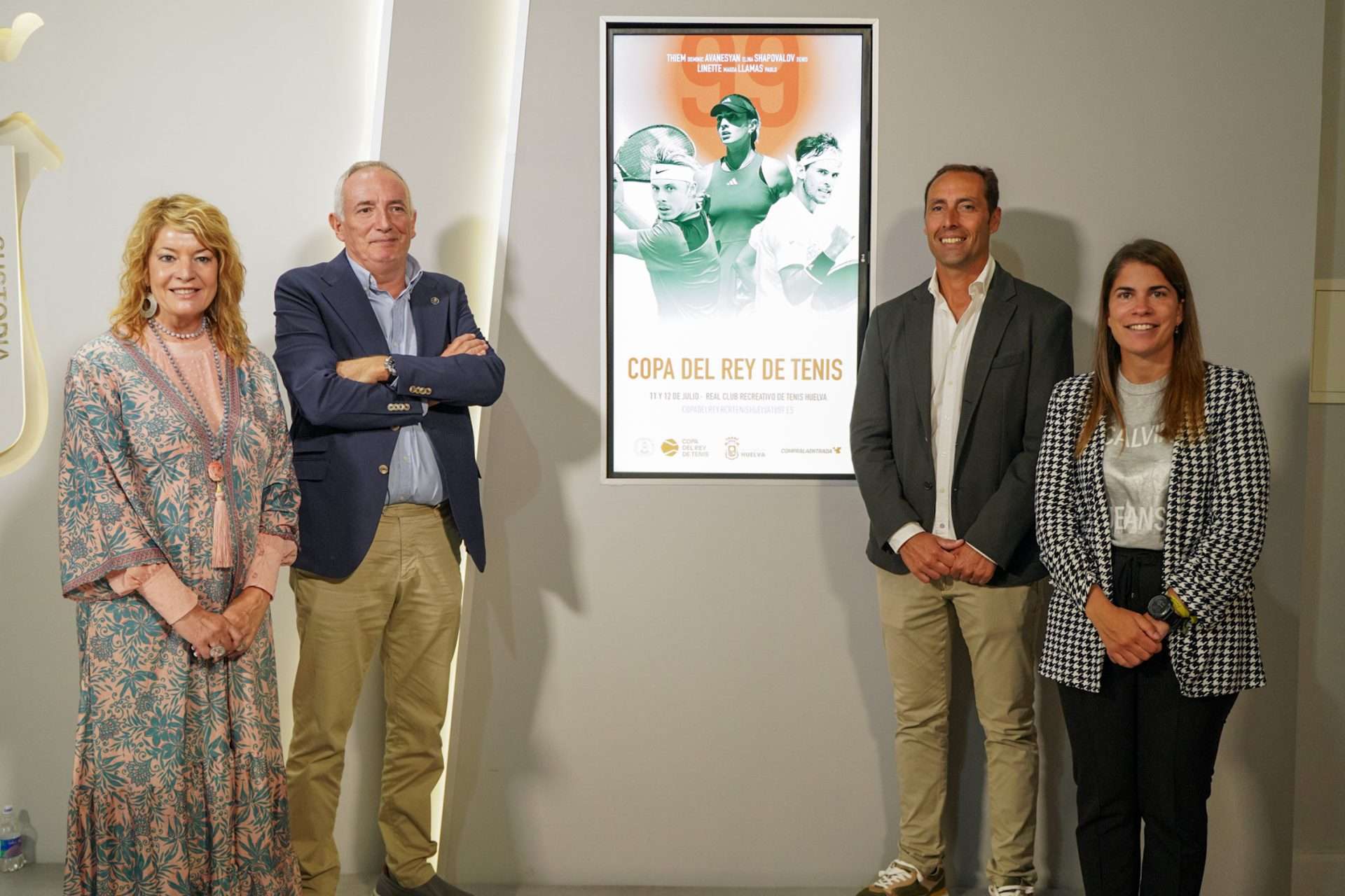 La alcaldesa de Huelva, Pilar Miranda; la concejala de Juventud y Deportes, María de la O Rubio; el presidente del Real Club Recreativo de Tenis de Huelva, Rafael Romero; y el director de la Copa del Rey de Tenis, Javier García, han presentado esta mañana en rueda de prensa la nonagésimo novena edición de la Copa del Rey de Tenis, que este año como novedad incluye la categoría sub-15. La competición, que tendrá lugar del 10 al 12 de julio en el Real Club Recreativo de Tenis, contará con la participación de Dominic Thiem, Denis Shapovalov, Martín Landaluce, Pablo Llamas, Magda Linette y Elina Avanesyan.