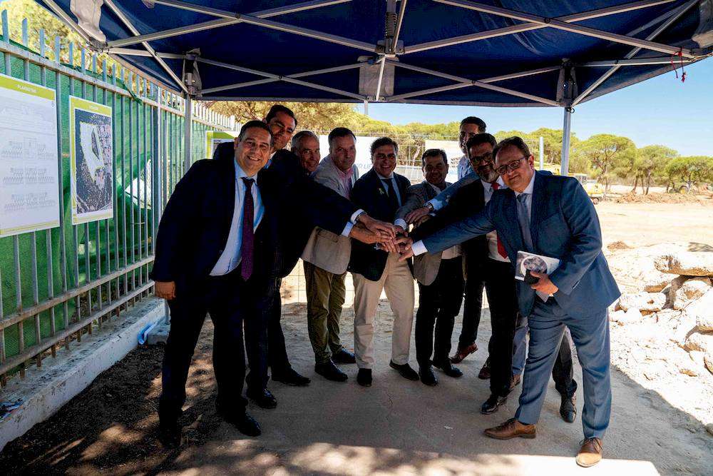 Representantes institucionales, encabezados por el alcalde de Punta Umbría, José Carlos Hernández, el delegado de la Junta de Andalucía de Inclusión Social, José Manuel Borrero y el diputado de Reto Demográfico, José Carlos Roda, han asistido al inicio de las obras del complejo ‘Punta Umbría Senior Resort’ y han explicado junto a sus promotores los detalles de este “innovador proyecto residencial que aúna naturaleza, bienestar, confort, atención sociosanitaria, actividades, seguridad privada y una amplia oferta de ocio y servicios”, según explicaron desde la empresa SENIOR LIFE Punta Umbría.