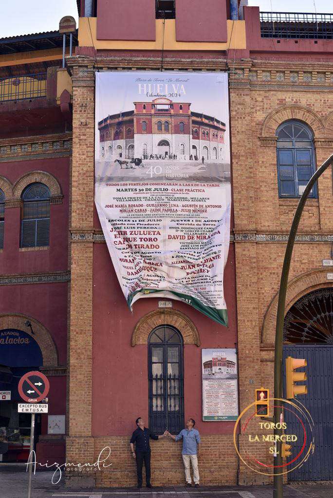 La inauguración del cartel ha sido sobre la fachada principal de la Plaza de Toros de La Merced y cuenta con unas dimensiones de ocho metros de largo por cuatro de ancho, lo que le “convierte en uno de murales taurinos más grandes del mundo”, señaló Santiago Arroyo. Por otro lado el gerente del coso mercenario añadió que “El despliegue del ‘Cartel Gigante’ es para nosotros como levantar el telón. Ya entramos en los días previos y significa el comienzo de la incipiente marcha atrás”.