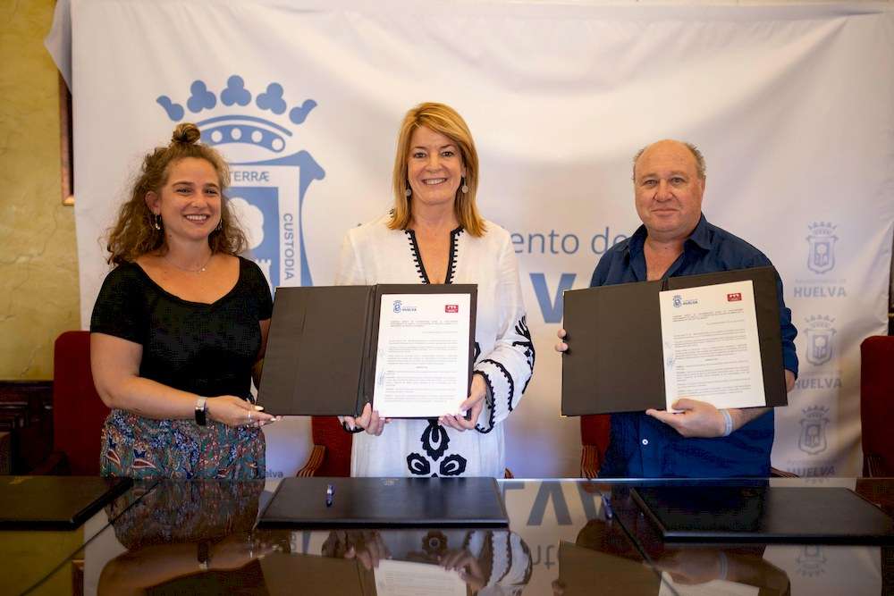 La alcaldesa de Huelva, Pilar Miranda, y el presidente de la Asociación de Antiguos Alumnos de la Universidad de Huelva ‘3 de Marzo’, Antonio José Redondo, han firmado un convenio de colaboración de cara a poner en marcha nuevas iniciativas en la capital que contribuyan a la difusión y promoción de la ciudad de Huelva a través de la celebración de diversas actividades.