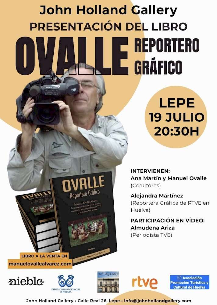 Huelva, 18 de julio de 2024.-El reportero gráfico de TVE Manuel Ovalle continúa con la presentación de su biografía Ovalle, reportero gráfico (Martín y Ovalle, 2024, Editorial Niebla) por distintos lugares de España. En esta ocasión recala el día 19 de julio a las 20.30 horas en la galería John Holland de Lepe, del reconocido pintor a nivel internacional Enrique Romero Santana. En el acto estarán presentes los coautores del libro, Ana Martín y Manuel Ovalle, acompañados de la reportera gráfica de RTVE en Huelva Alejandra Martínez. Asimismo, durante el acto se emitirá un vídeo de la corresponsal de RTVE en Jerusalén, Almudena Ariza. Por parte del Ayuntamiento de Lepe está prevista la asistencia de la concejala delegada de Comunicación, Turismo y Playa, Elena Vélez.