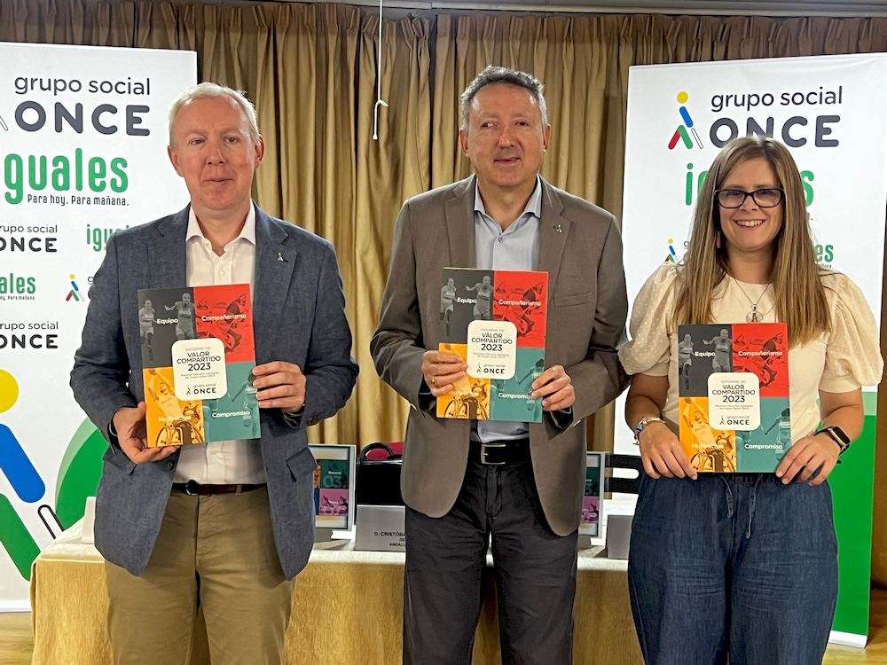 Son los datos más destacados del Informe de Valor Compartido del Grupo Social ONCE 2023 que han presentado hoy en Huelva el delegado de la ONCE en Andalucía, Ceuta y Melilla, Cristóbal Martínez, y el director de la ONCE en Huelva, Daniel Guerra. “Ha sido un gran año para el Grupo Social ONCE en Huelva y en Andalucía. Hemos aumentado los ingresos, hemos dado más premios, hemos ampliado nuestra plantilla, hemos atendido a más personas que se han quedado ciegas, hemos ayudado a más personas a afrontar su discapacidad, hemos hecho realidad nuevos proyectos de vida a través de la seguridad que da un empleo y hemos reforzado nuestra identidad como motor de inclusión en la sociedad”, sostiene. En el acto han participado el consejero territorial de la ONCE en Huelva, Juan José Díaz, junto al resto de representantes del Grupo Social ONCE de la provincia.