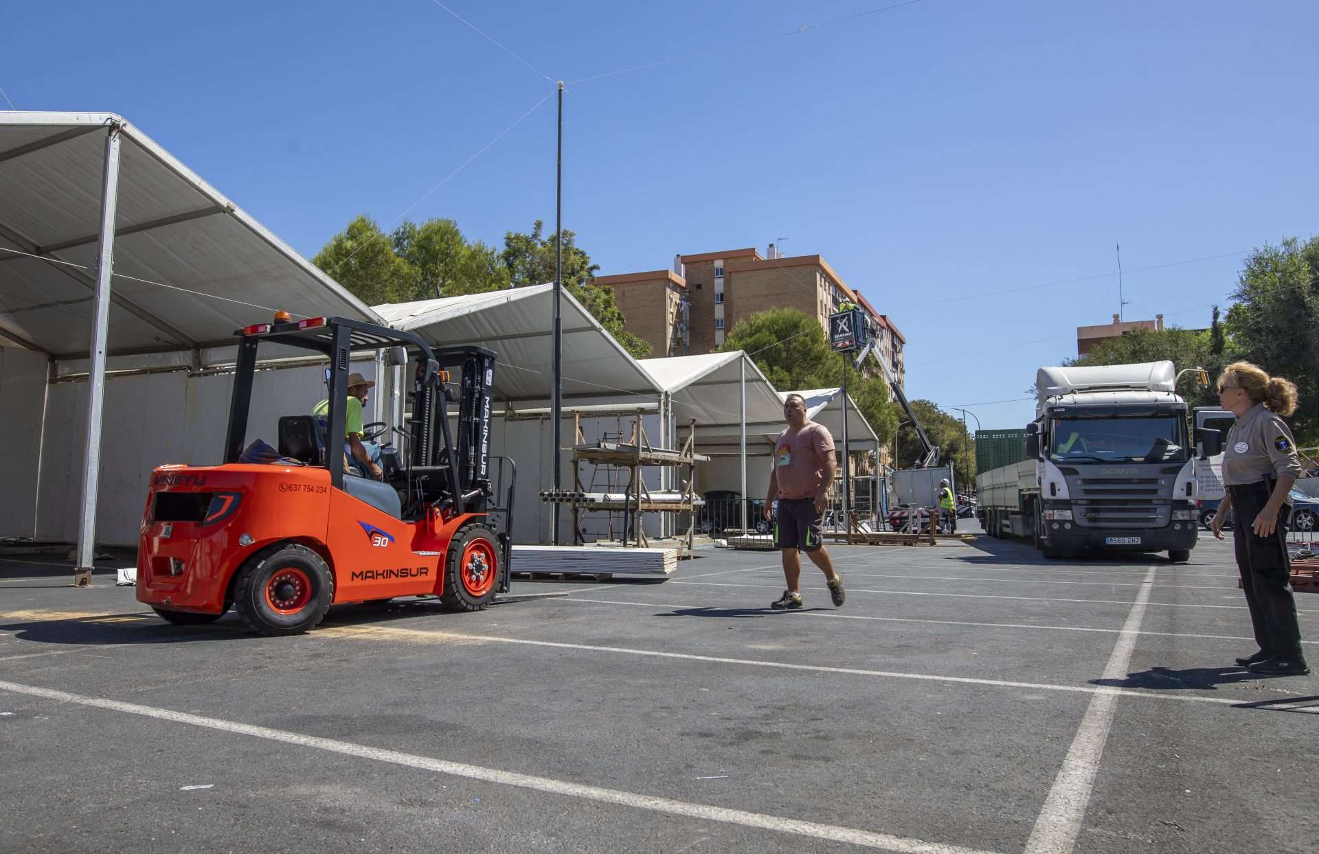 Los distintos servicios municipales del Ayuntamiento de Huelva concentran esfuerzos en la cuenta atrás del inicio de las fiestas patronales, para la puesta a punto de las distintas infraestructuras. Con los trabajos muy adelantados en el Parque Alcalde Juan Ceada Infantes convertido desde la pasada edición en un segundo espacio de conciertos, las tareas se centran ahora en el acondicionamiento del recinto de La Orden que protagoniza las principales novedades por la redistribución de espacios, marcado por el traslado del escenario principal a la Plaza de Las Oblatas.