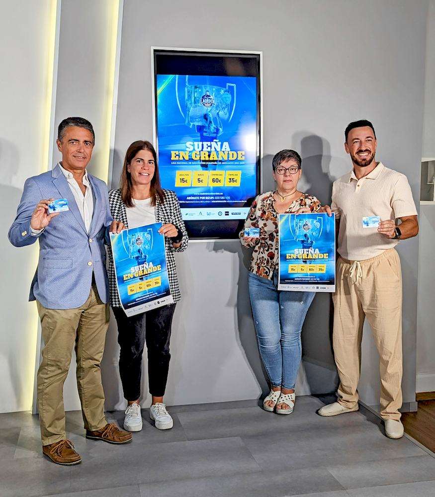 La presidenta del Club de Bádminton IES La Orden, María Eugenia Lorenzo y el vicepresidente y director deportivo, Paco Ojeda, acompañados por la concejala de Juventud y Deportes del Ayuntamiento de la ciudad, María de la O Rubio, han presentado hoy la nueva campaña de abonados que, bajo el lema “Sueña en grande”, pretende recabar el apoyo de la ciudadanía y las empresas onubenses para seguir cosechando nuevos éxitos deportivos durante la temporada 2024/2025.